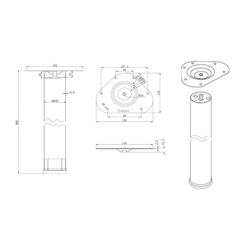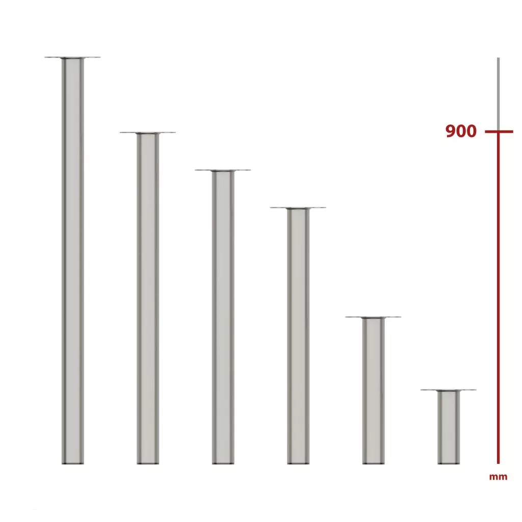 A 900 mm magas, rozsdamentes acélból készült, kerek bútorláb stílusos dizájndarabpá varázsolja bútorát.