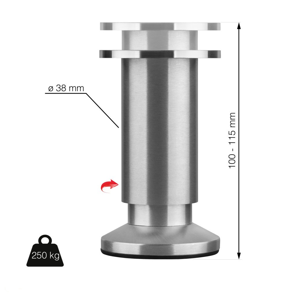 Bútorláb átmérője 38 mm magassága 100-115 mm között állítható 250 kg szálcsiszolt alumínium