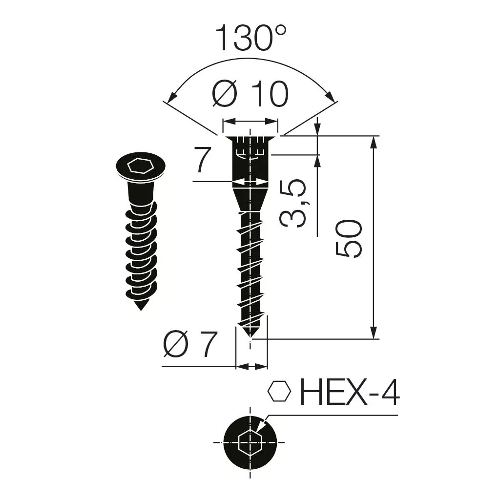 Confirmat összekötő csavar 7x50mm fekete 20 db.