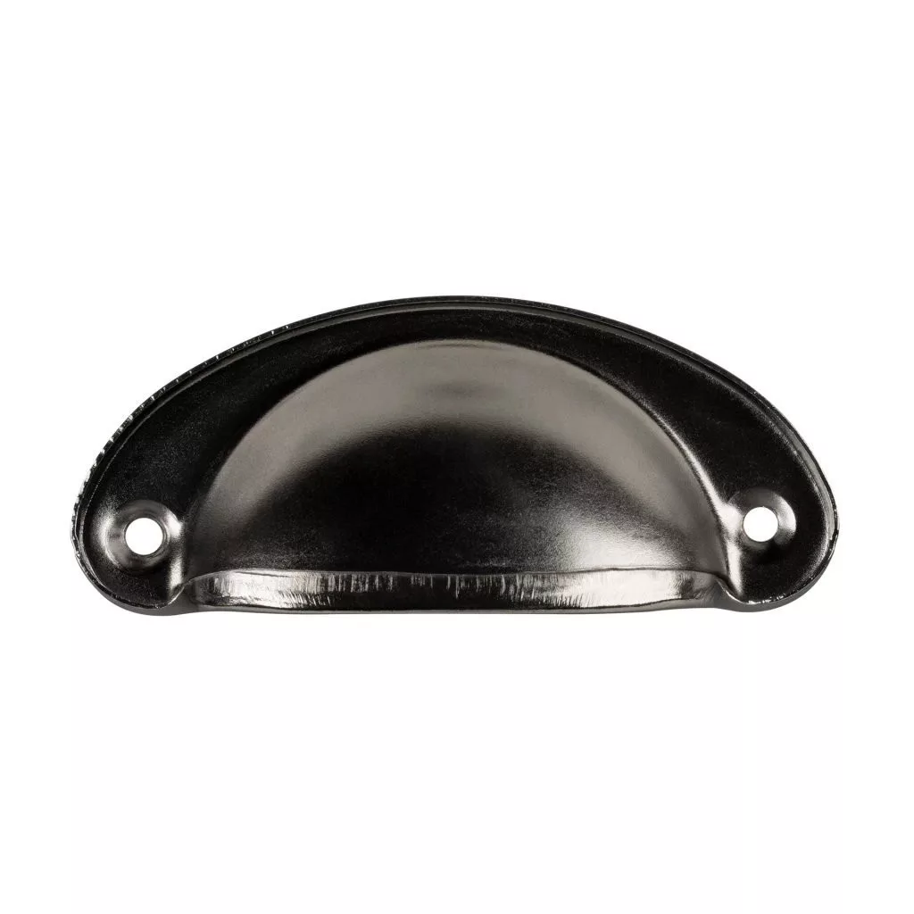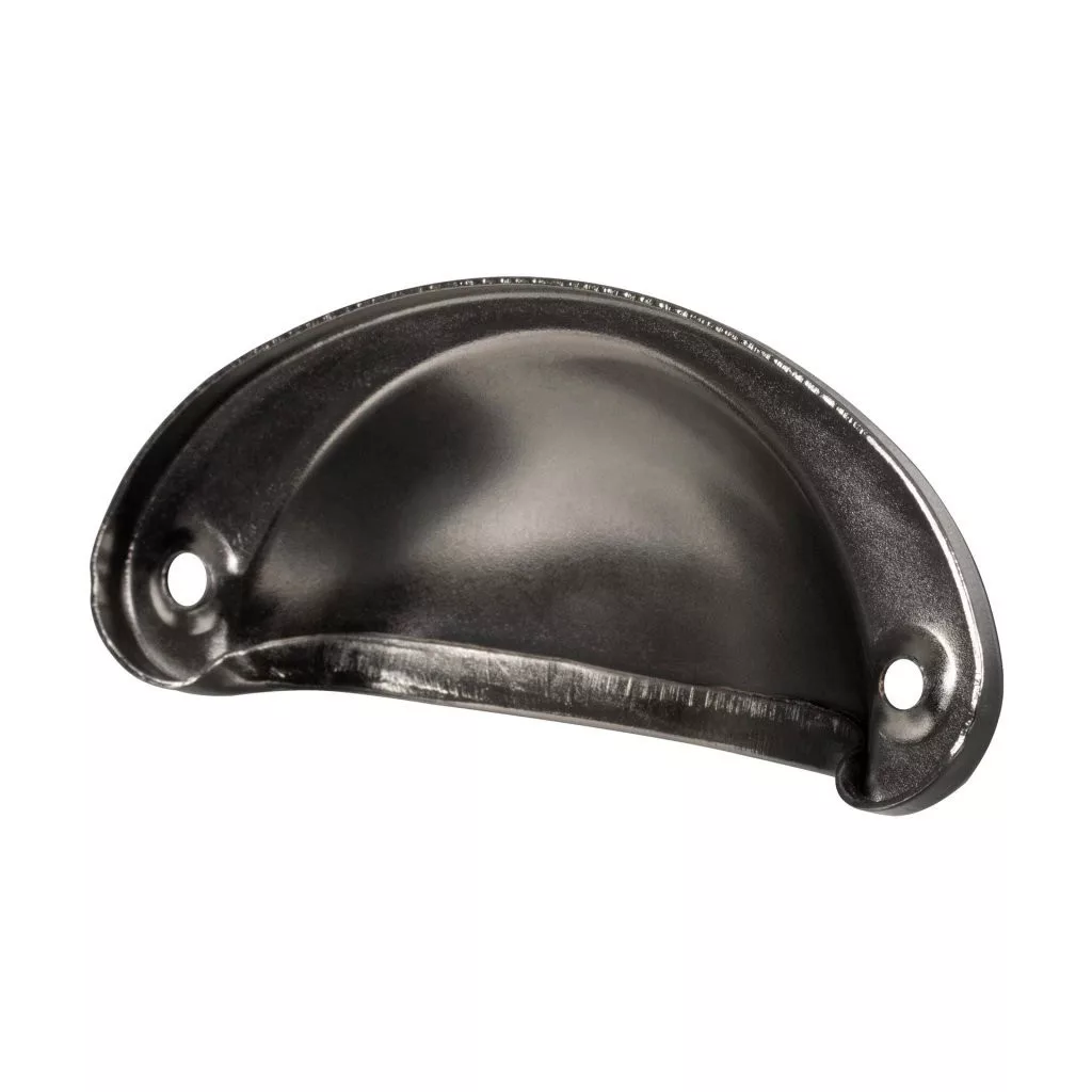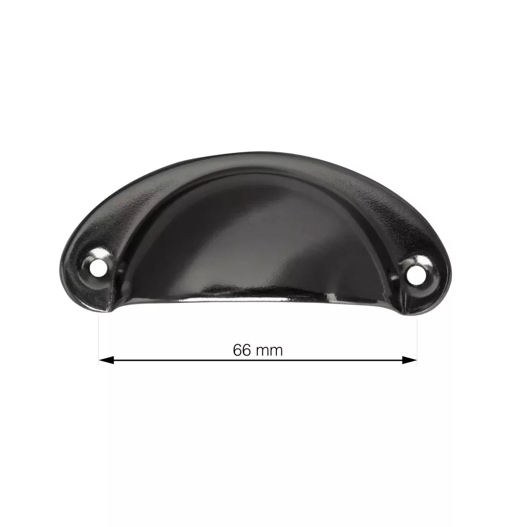 Modern Skive bútorfogantyú rusztikus stílusban, 66 mm-es rasztermérettel és fekete cink bevonattal. A fogantyú hossza 82 mm, szélessége 33 mm és magassága 18 mm. Rögzítőcsavarokkal együtt.