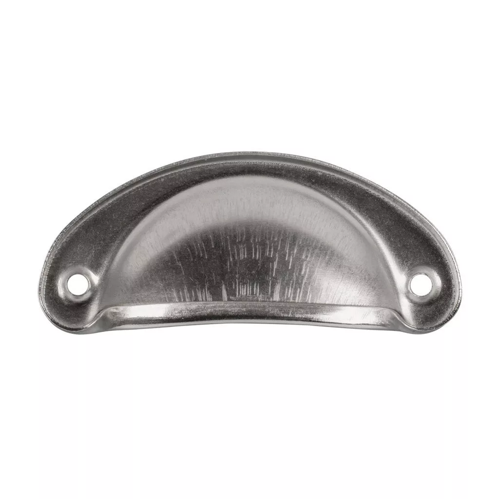 Modern Skive bútorkilincs rusztikus stílusban, 66 mm-es rasztermérettel és matt nikkel bevonattal. A fogantyú hossza 82 mm, szélessége 33 mm és magassága 18 mm.