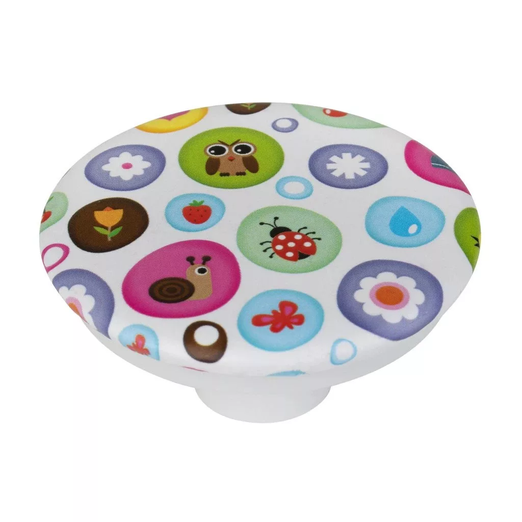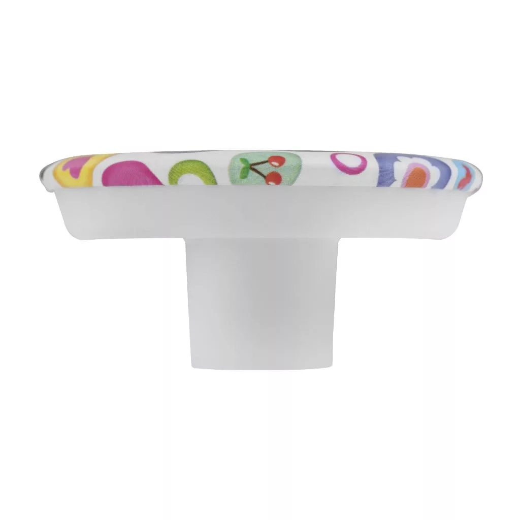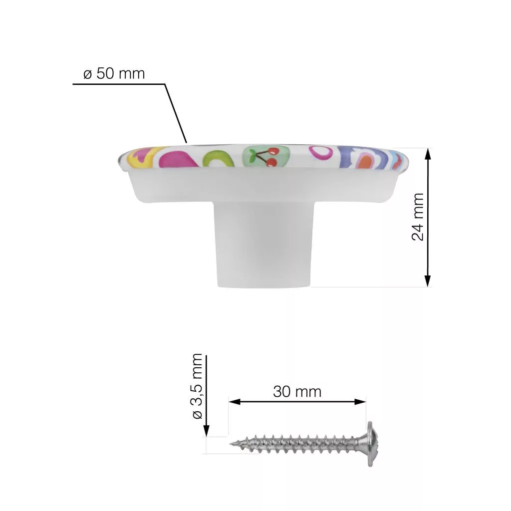 50 mm átmérőjű és 24 mm magas Motivy műanyag gyerek bútorgomb. A csomag tartalmaz egy rögzítőcsavart.