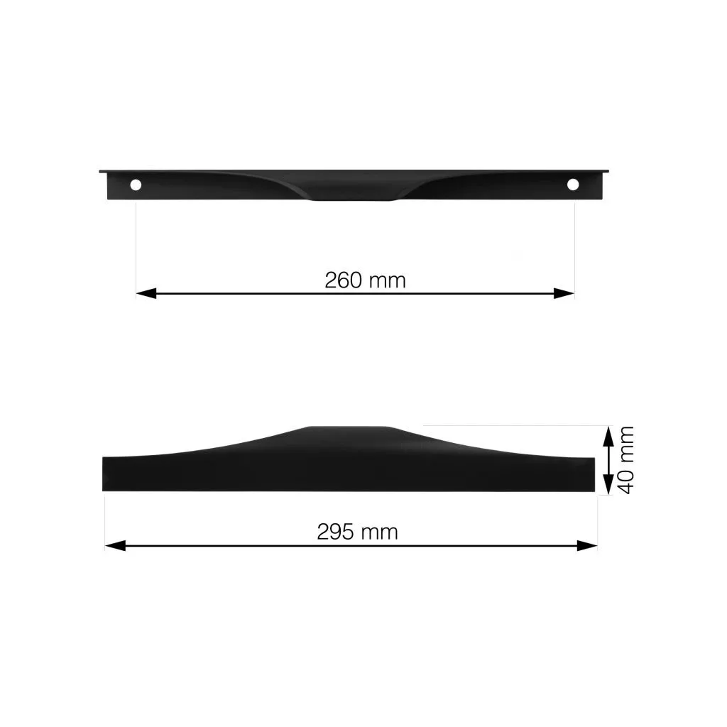 Modern Todi bútorfogantyú 260 mm-es rasztermérettel, matt fekete színben, 295 mm hosszú és 40 mm széles. A fogantyú a fiók belsejéből szerelhető - a szerelési anyagok a csomag részét képezik. Ez a rögzítési mód nagyon népszerű a feltűnésmentessége miatt - jól illik a világos fa dekorációkhoz.