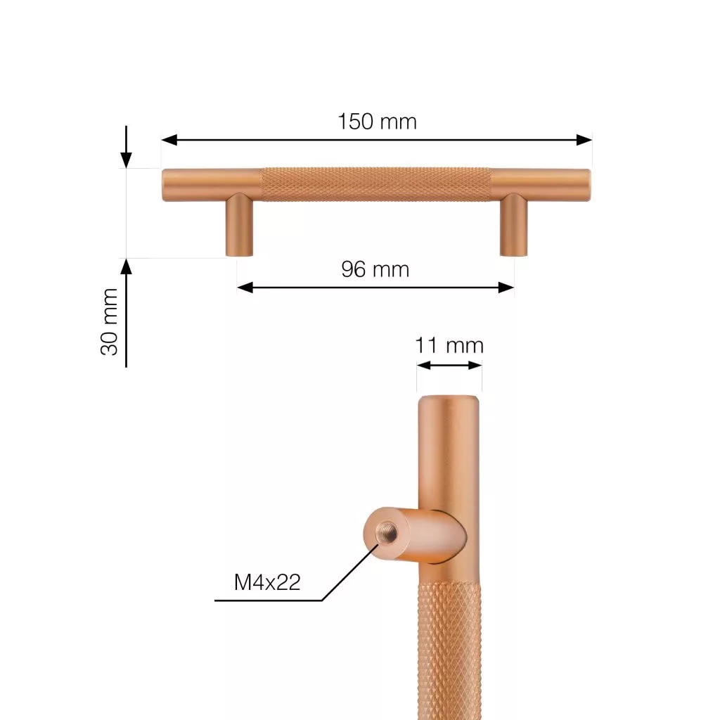 Modern Toledo bútorfogantyú 96 mm-es tengelytávolsággal és matt arany felülettel. Fogantyúhossz 150 mm és magasság 30 mm. Rögzítőcsavarokkal együtt.
