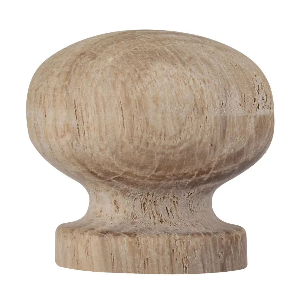 Natúr tölgyfa színű Finn fa bútorgomb, átmérője 30 mm, magassága 27 mm. Rögzítőcsavarral együtt.