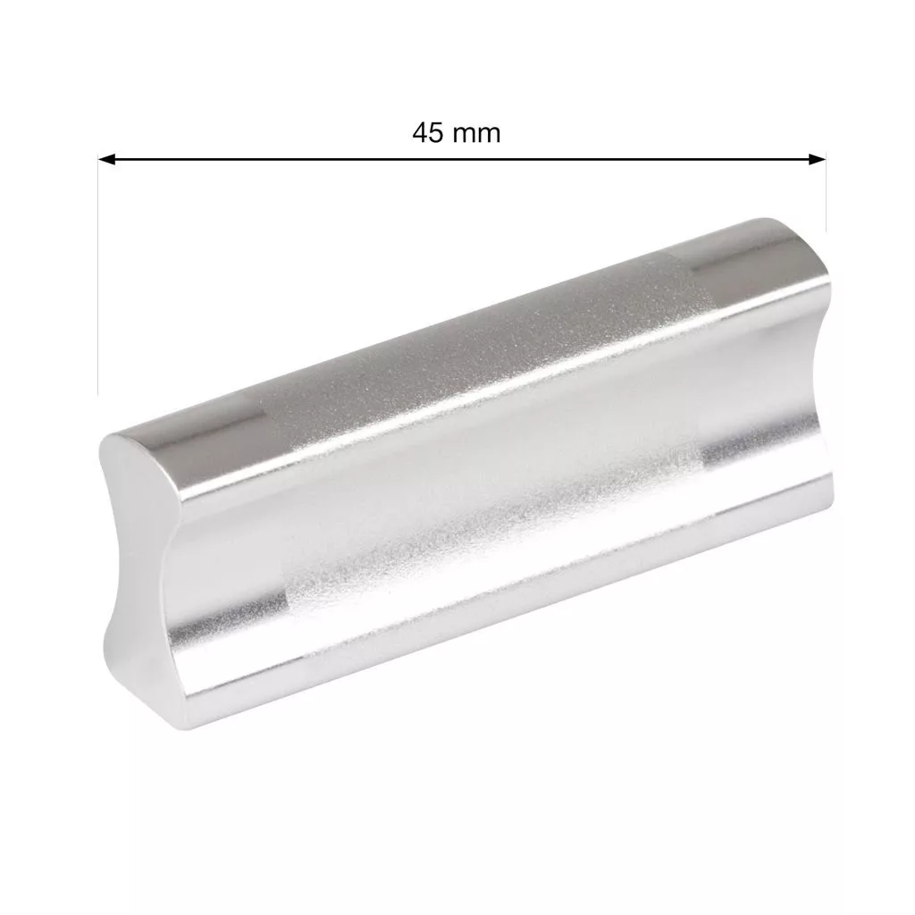 Ivana bútorfogantyú klasszikus dizájnnal, 32 mm-es rasztermérettel és fényes alumínium felülettel. A fogantyú hossza 45 mm, szélessége 9 mm és magassága 17 mm. Rögzítőcsavarokkal együtt.