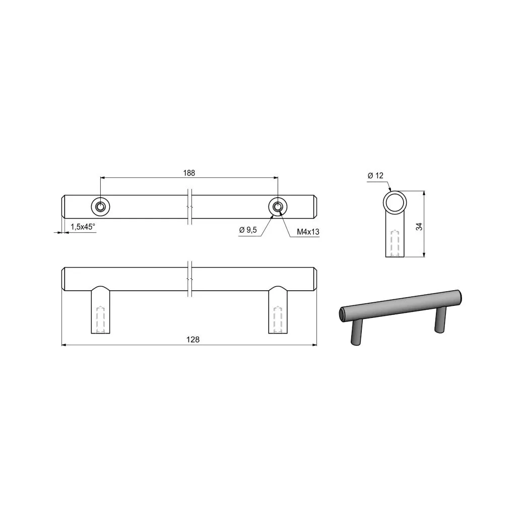 Modern Maxim bútorfogantyú 128 mm-es tengelytávolsággal és szálcsiszolt szatén nikkel felülettel. Fogantyúhossz 188 mm, szélesség 12 mm és magasság 35 mm. Rögzítőcsavarokkal együtt.