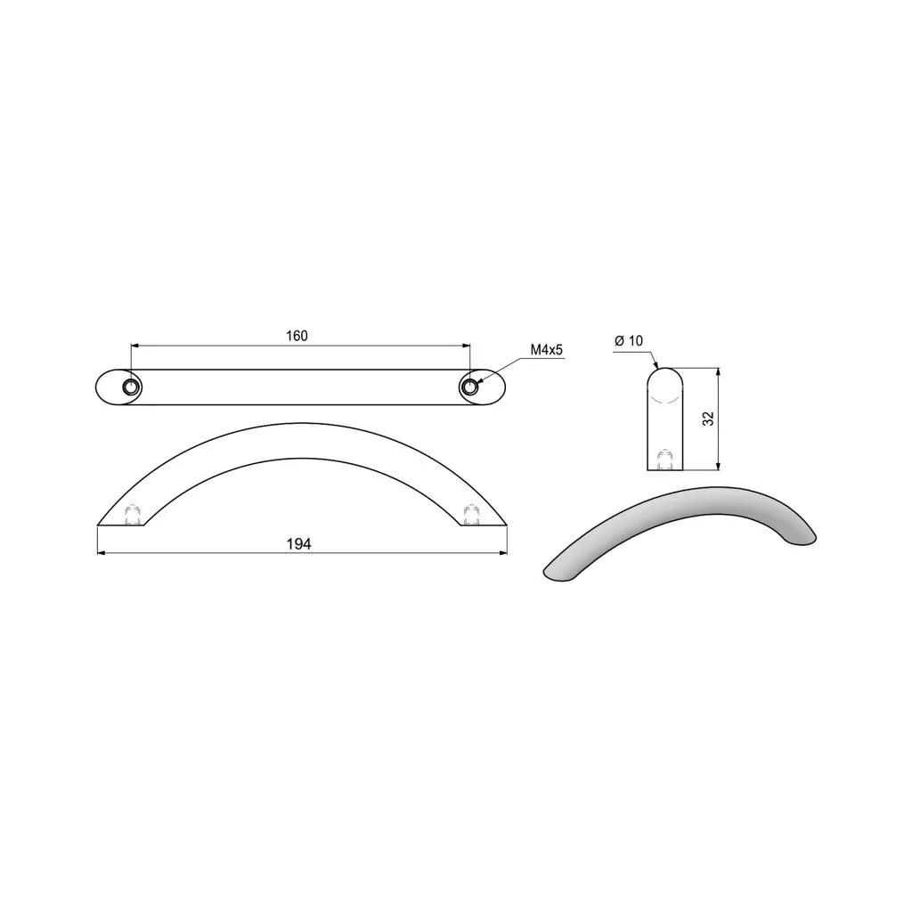Klasszikus dizájnú, 160 mm-es tengelytávolsággal és matt króm felülettel ellátott Beta bútorfogantyú. A fogantyú hossza 194 mm, szélessége 10 mm és magassága 32 mm. Rögzítőcsavarokkal együtt.
