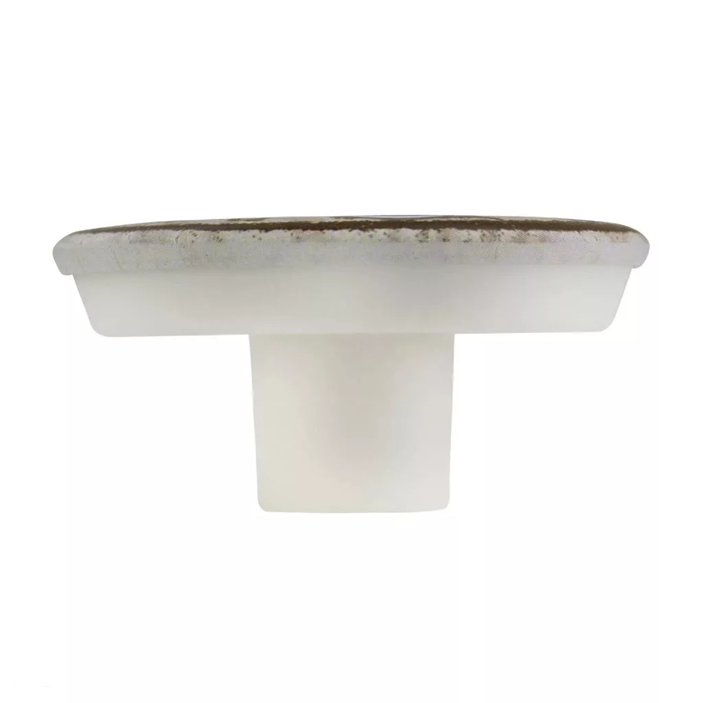 Csipke mintás műanyag bútorgombok szettje, 50 mm átmérőjű és 24 mm magas. A csomag 4 gombot és mindegyikhez egy rögzítőcsavart tartalmaz.