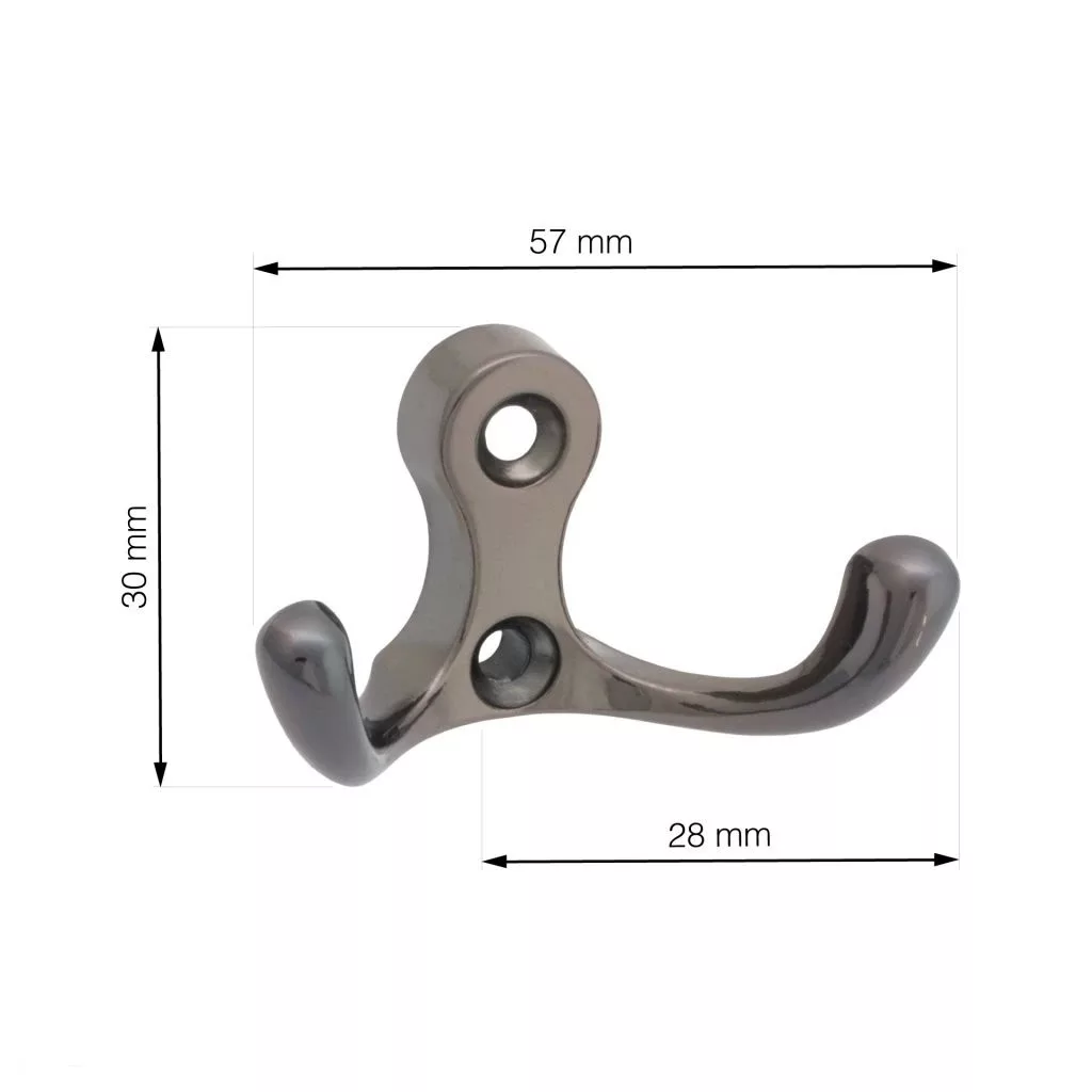 Klasszikus Romero II kabáttartó fekete nikkel felülettel, két 57 mm széles, 30 mm magas és 28 mm mély akasztóval. Falra vagy fa felületre való rögzítéshez 18 mm-es távolság. Rögzítőcsavarokkal együtt.