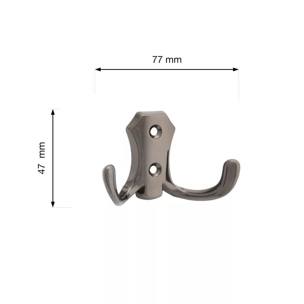 Rusztikus, fekete nikkel színű, Romana II kabáttartó állvány, szélessége 77 mm, magassága 47 mm és mélysége 30 mm. Falra vagy fa felületre való szereléshez 20 mm távolság. Rögzítőcsavarok mellékelve.
