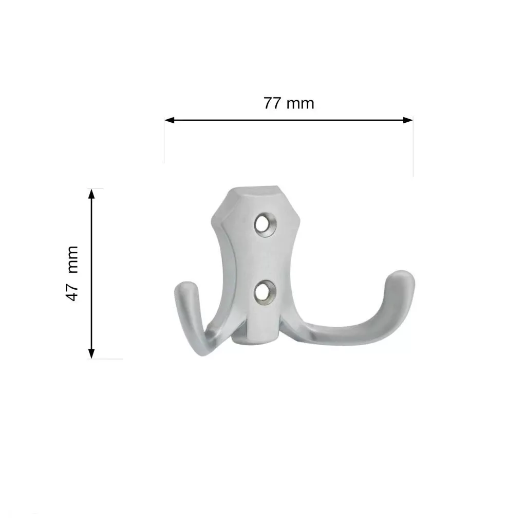 Klasszikus Romana II kabáttartó matt króm kivitelben, két 77 mm széles, 47 mm magas és 30 mm mély akasztóval. Falra vagy fa felületre való rögzítéshez 20 mm távolság. Rögzítőcsavarok mellékelve.