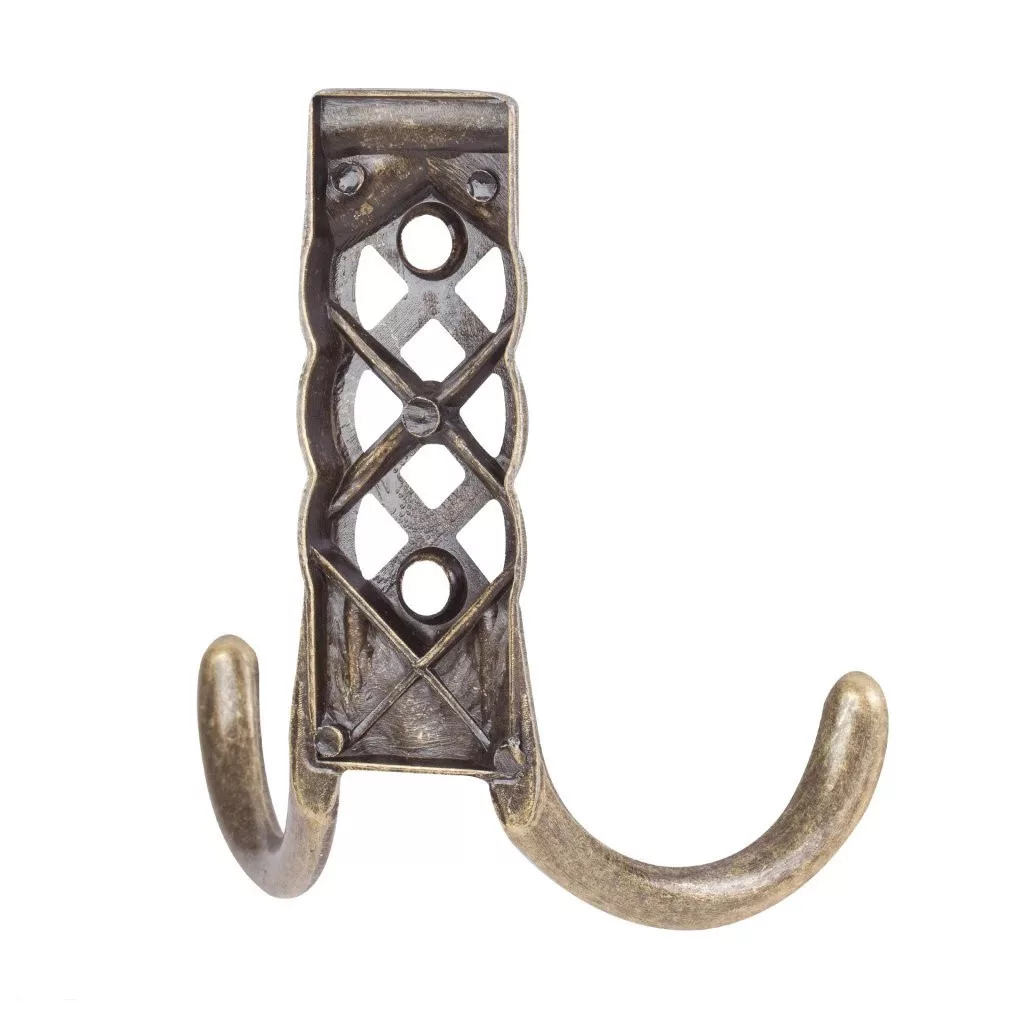 Rusztikus, bronz színű Borneo II kabáttartó állvány két akasztóval, 79 mm széles, 84 mm magas és 32 mm mély. Falra vagy fa felületre való rögzítéshez 34 mm akasztótávolság. Rögzítőcsavarok mellékelve.