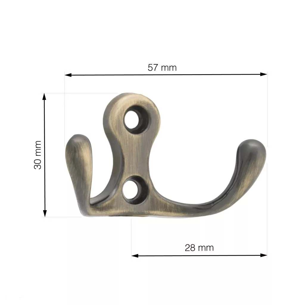 Rusztikus, bronz színű Romero II kabáttartó állvány két 57 mm széles, 30 mm magas és 28 mm mély akasztóval. Falra vagy fa felületre való rögzítéshez 16 mm-es távolság. Rögzítőcsavarokkal együtt.