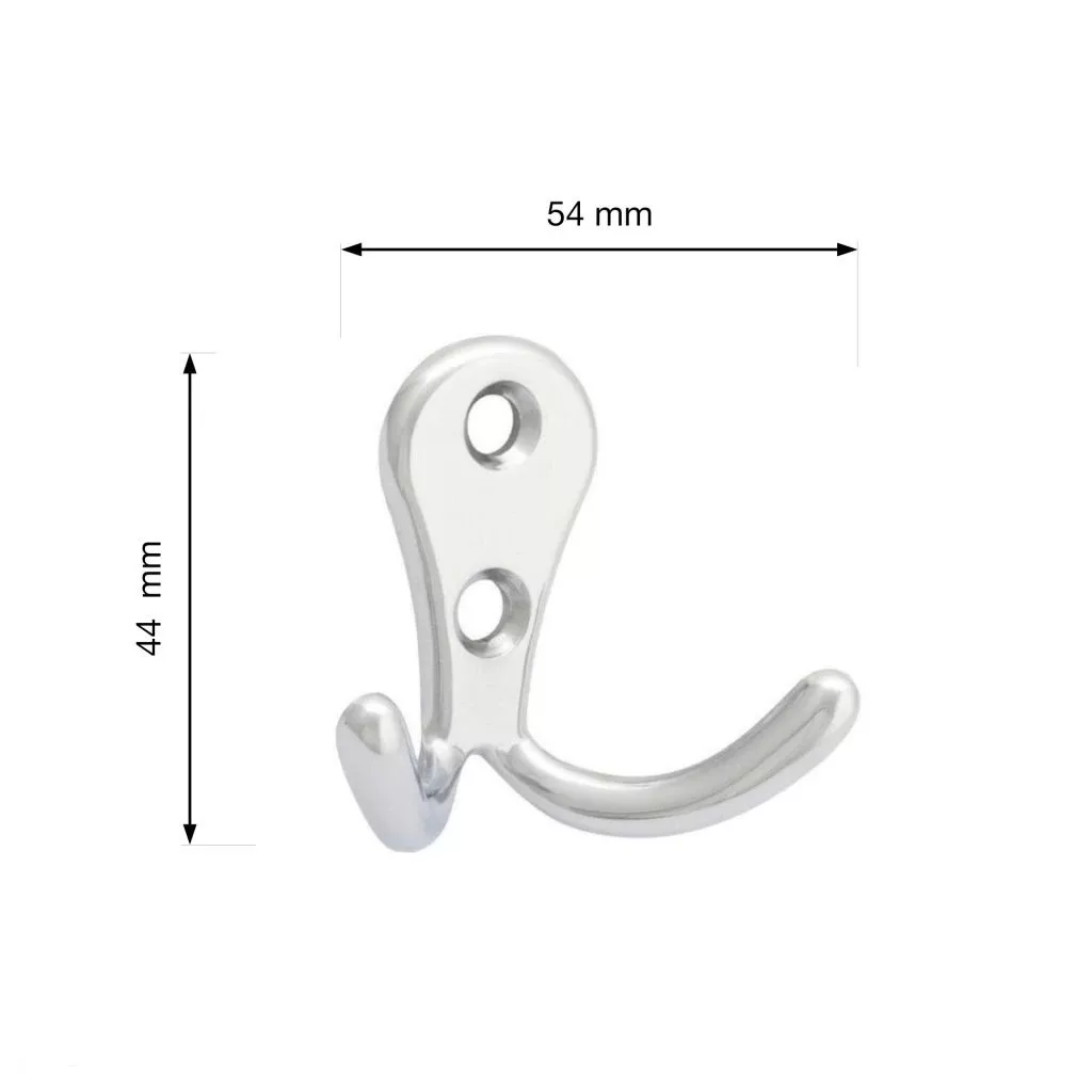 Klasszikus Romero II Króm felületű kabáttartó két akasztóval, 54 mm széles, 44 mm magas és 24 mm mély. Falra vagy fa felületre való szereléshez 16 mm-es távolság. Rögzítőcsavarok mellékelve.