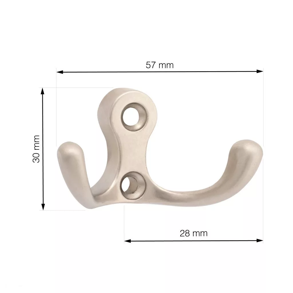 Klasszikus Romero II kabáttartó matt nikkel felülettel, két 57 mm széles, 30 mm magas és 28 mm mély akasztóval. Falra vagy fa felületre való rögzítéshez 18 mm-es távolság. Rögzítőcsavarok mellékelve.