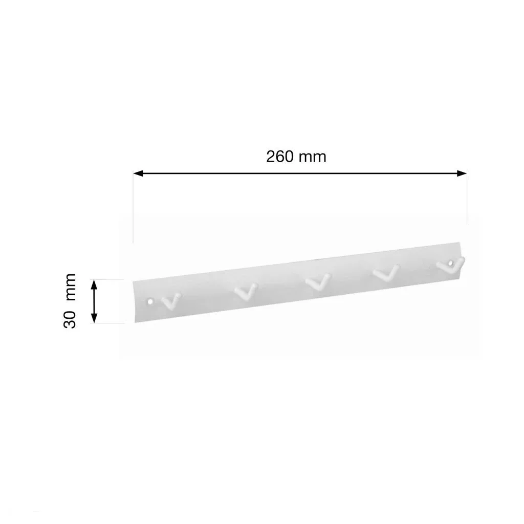 Ruhatartó 260x30 mm 5 akasztóval fehér