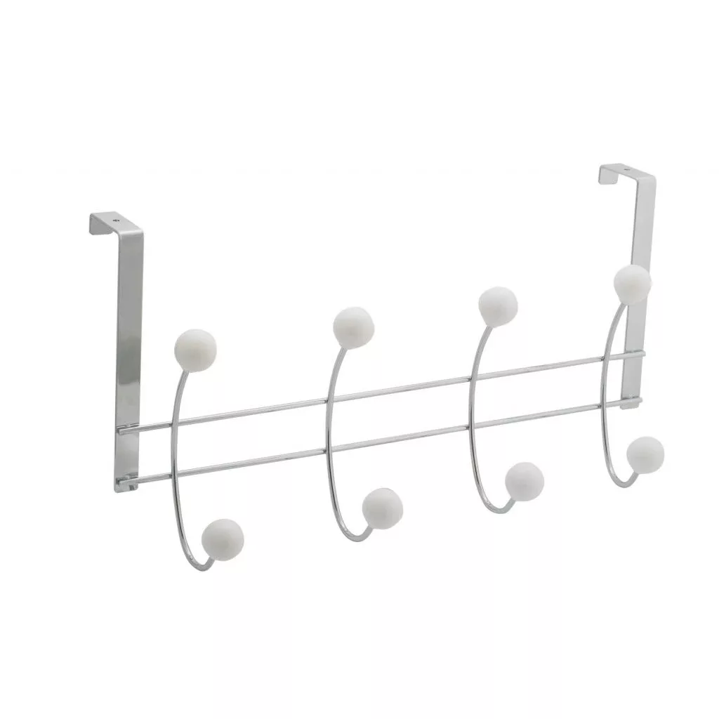 Krómozott ajtóakasztó 4 kampóval (fehér golyókkal a végén), szélessége 370 mm, magassága 195 mm és mélysége 125 mm. Akasztómélység 40 mm.