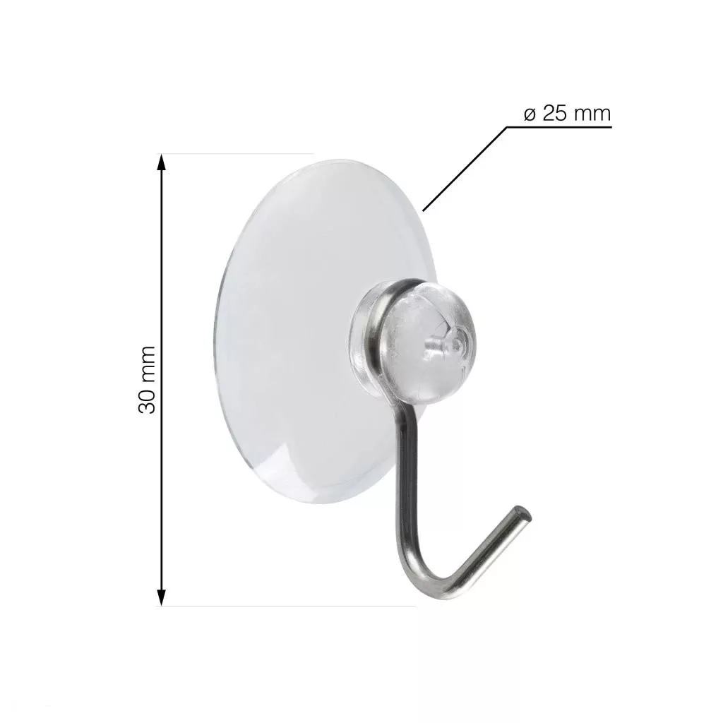 25 mm átmérőjű tapadókorong, amely alkalmas fürdőszobai vagy konyhai csempére rögzítésre. A csomag 6 darabot tartalmaz.