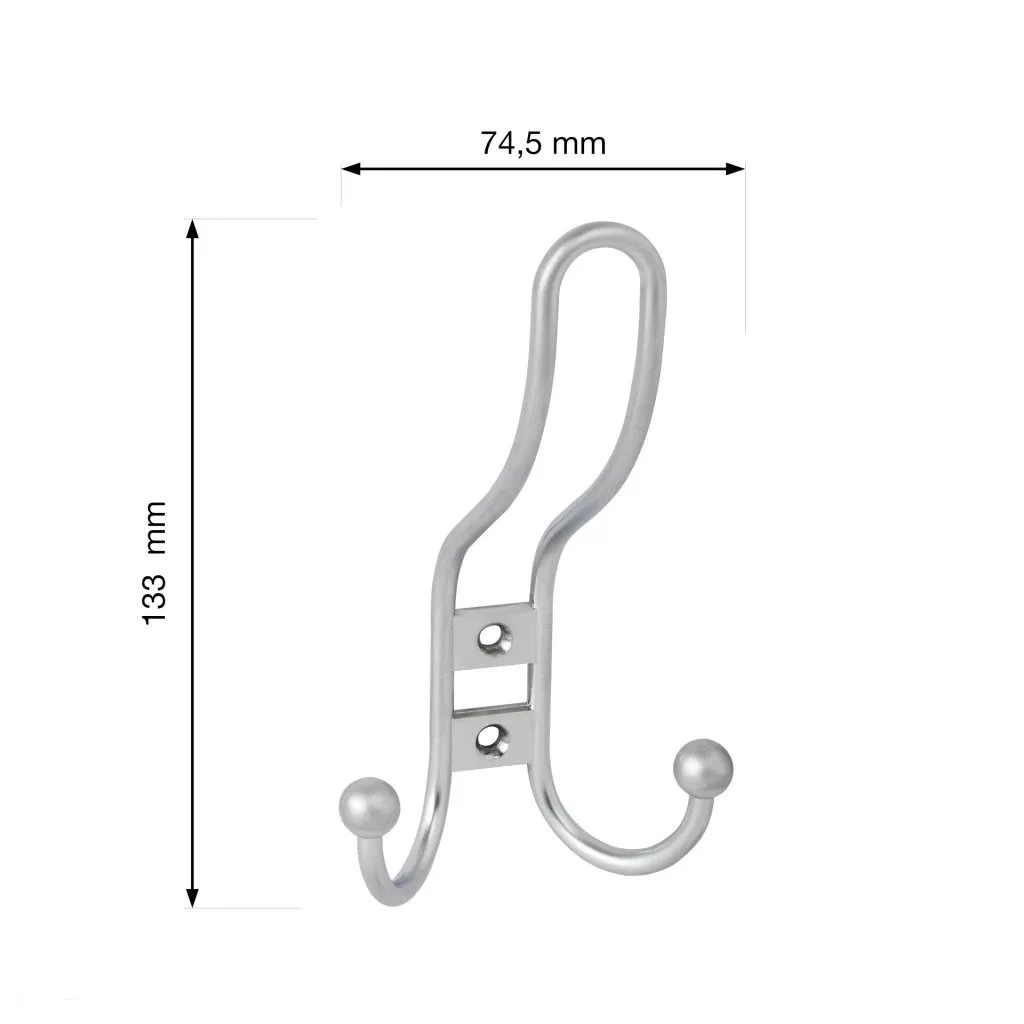 Klasszikus Lorex I kabáttartó matt króm kivitelben, két akasztóval, 74,5 mm széles, 133 mm magas és 55 mm mély. Falra vagy fa felületre való rögzítéshez 20 mm-es távolság. Rögzítőcsavarok mellékelve.