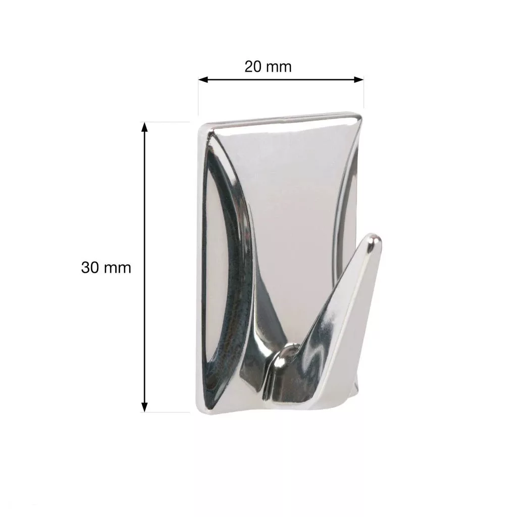 Krómozott műanyag QF4 akasztóhorog, szélessége 20 mm, magassága 30 mm és mélysége 18 mm.