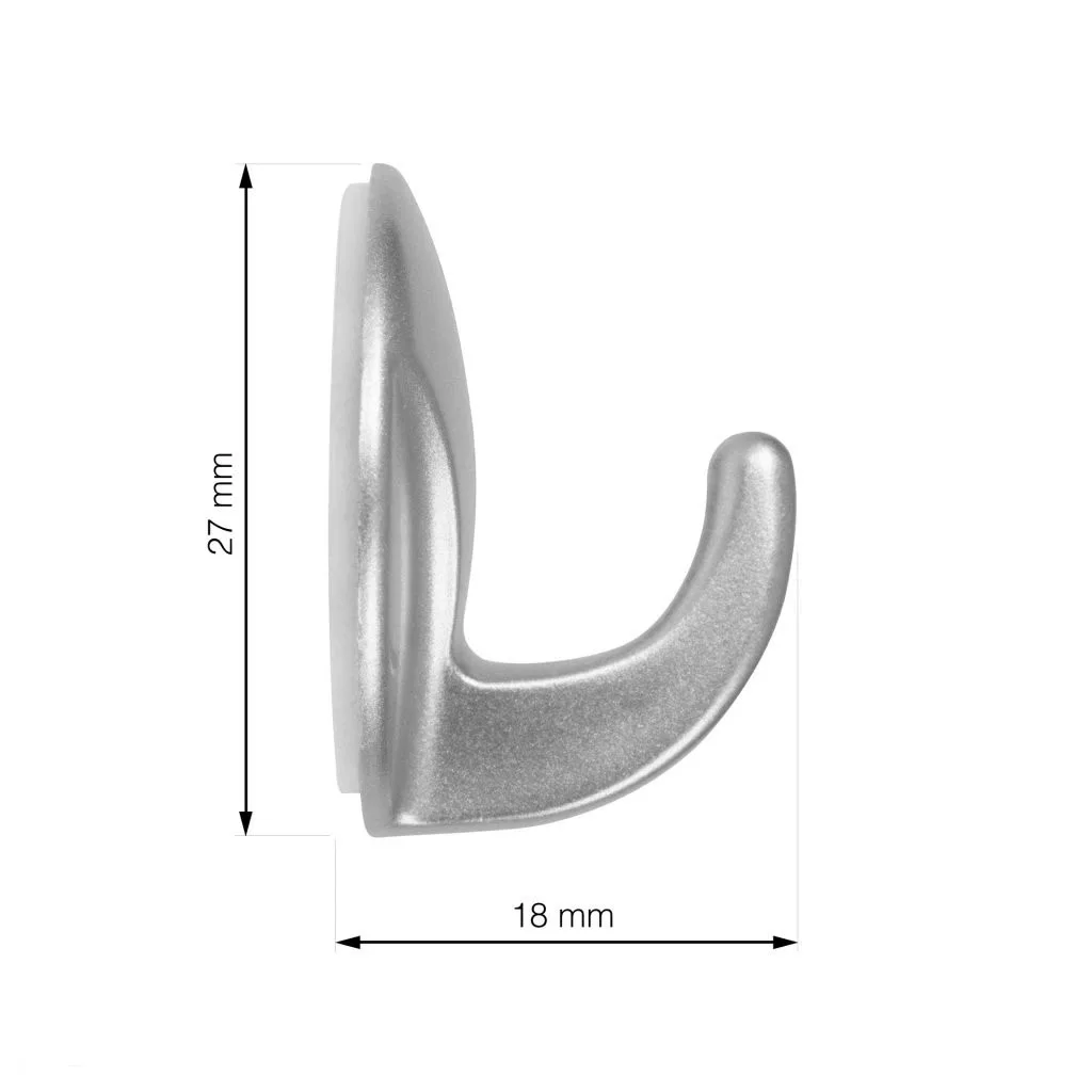 Műanyag akasztó QF6 matt króm kivitelben, 34 mm széles, 27 mm magas és 18 mm mély.