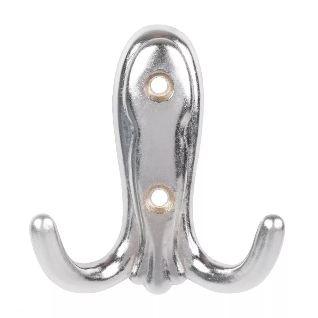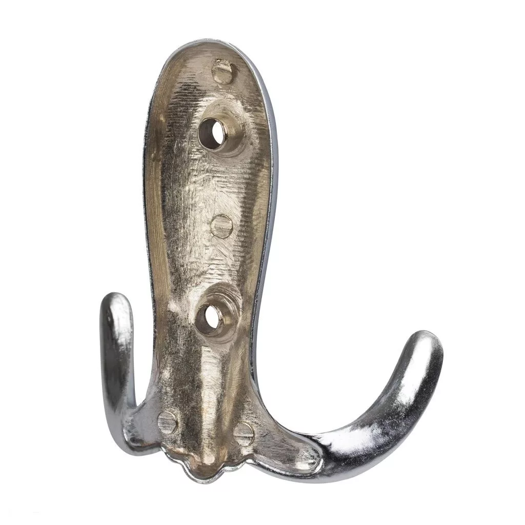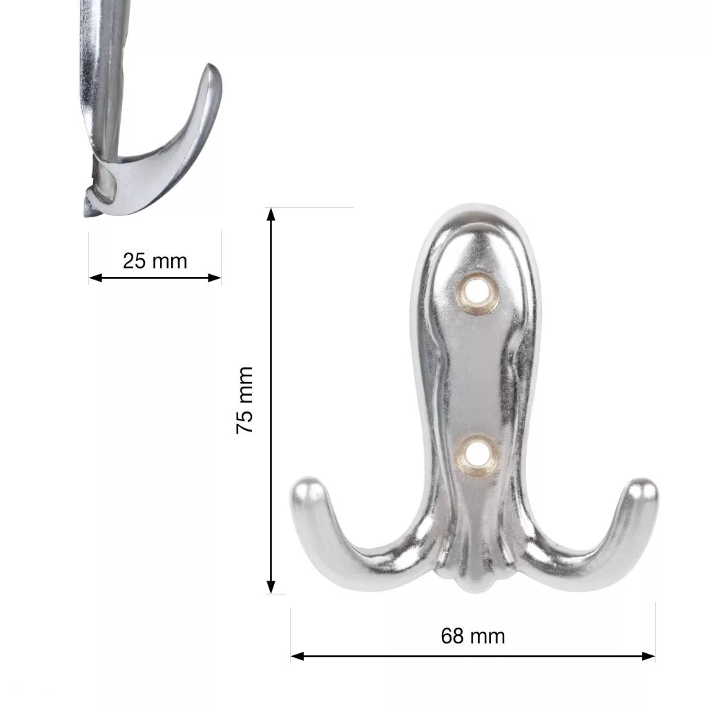 Klasszikus Addis kabáttartó matt króm kivitelben, két 68 mm széles, 75 mm magas és 25 mm mély akasztóval. Falra vagy fa felületre való rögzítéshez 30 mm távolság szükséges. Rögzítőcsavarok mellékelve.