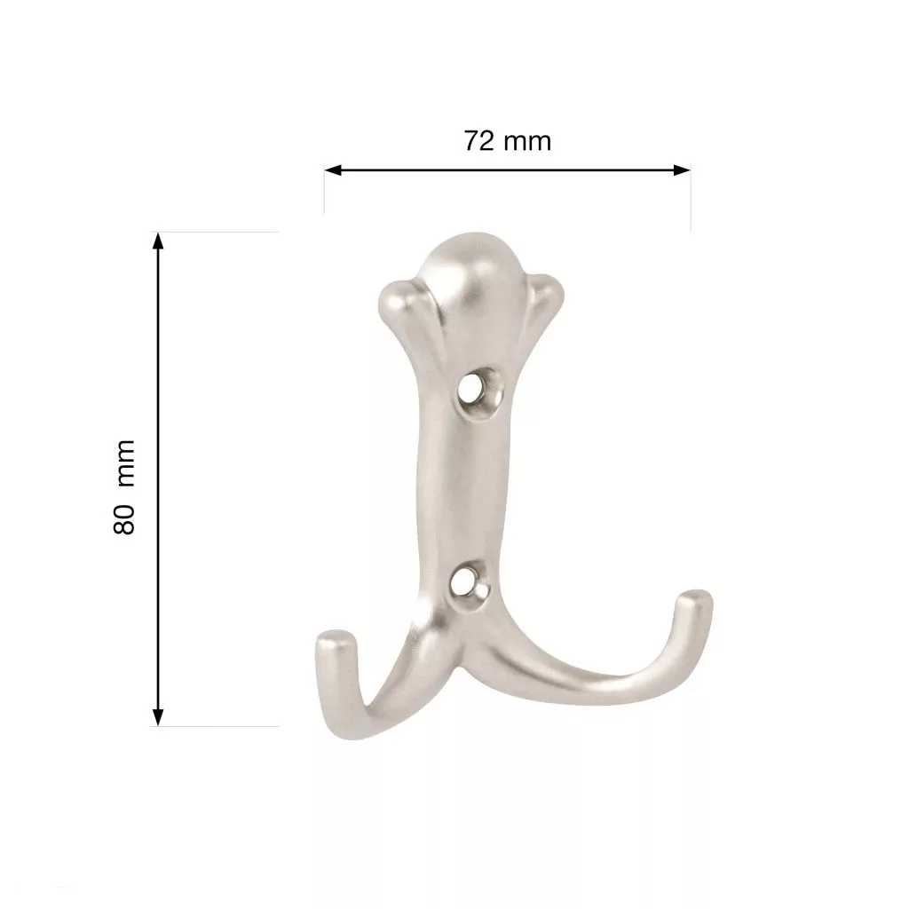 Rusztikus Berfi kabáttartó matt nikkel felülettel, két akasztóval, 72 mm széles, 80 mm magas és 26 mm mély. Falra vagy fa felületre való rögzítéshez 32 mm távolság. Rögzítőcsavarokkal együtt.
