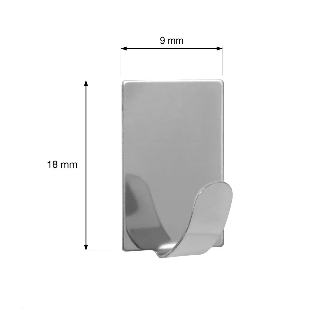 Rozsdamentes acélból készült, öntapadós QF16 kampó, 9 mm szélességgel, 18 mm magassággal és 5 mm mélységgel. Az anyaguknak köszönhetően alkalmasak párás környezetbe - nem rozsdásodnak. A csomag 2 db-ot tartalmaz.