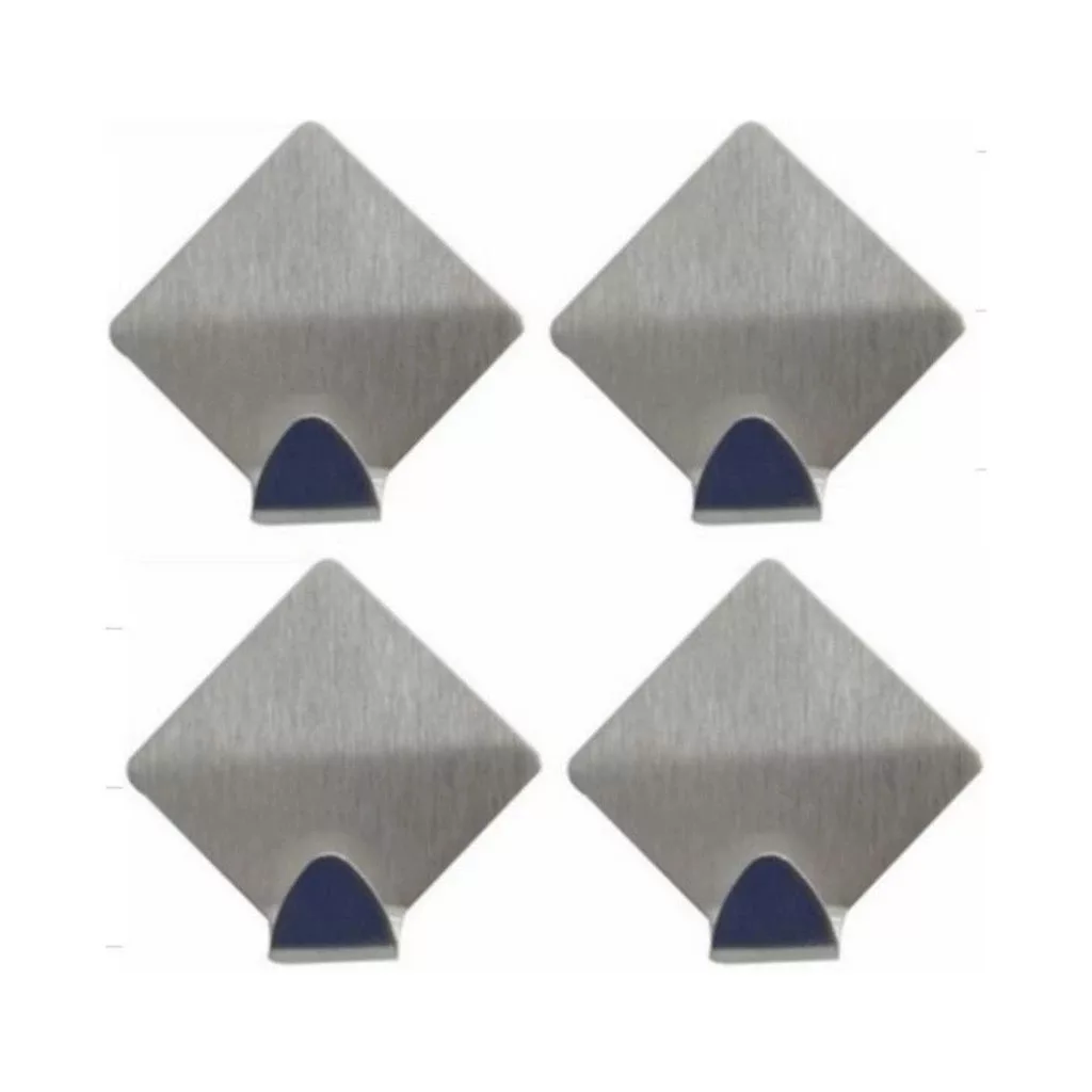 Rozsdamentes acélból készült, öntapadós, rombusz alakú akasztó, 35 mm széles, 45 mm magas és 20 mm mély. Anyaguknak köszönhetően alkalmasak párás környezetbe - nem rozsdásodnak. A csomag 4 darabot tartalmaz.