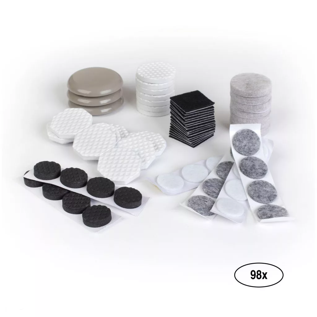 Öntapadós filc és EVA párnákból, műanyag csúszkákból álló készlet, amelyek megvédik a felületeket.