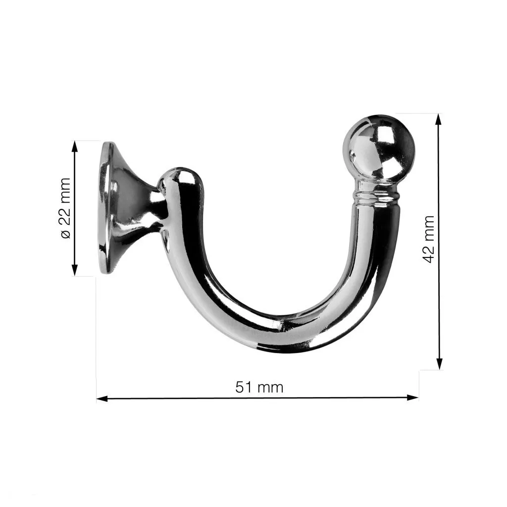 Klasszikus Hubert kabáttartó króm felülettel, 22 mm széles, 42 mm magas és 51 mm mély. Rögzítőcsavarral együtt.