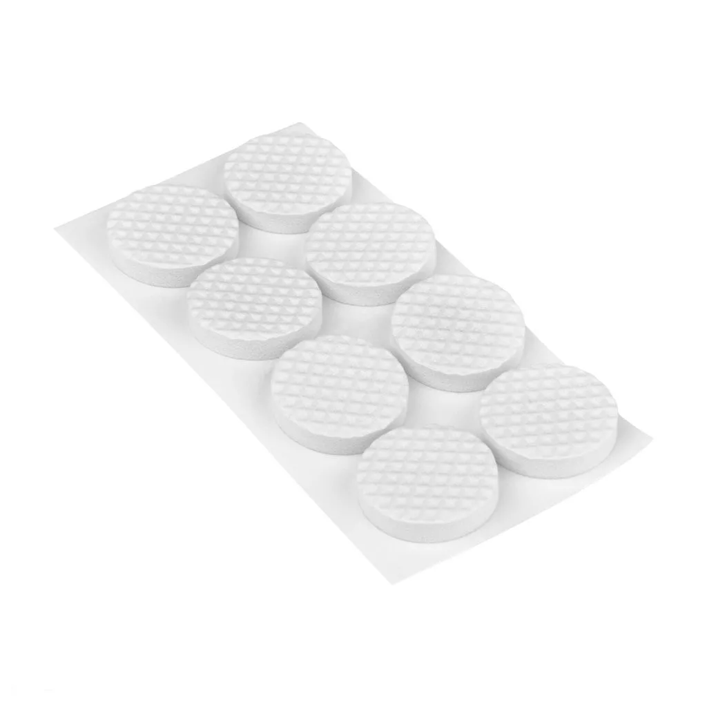 25 mm átmérőjű, öntapadós, csúszásgátló alátétek fehér színben. Könnyű, puha és rugalmas.