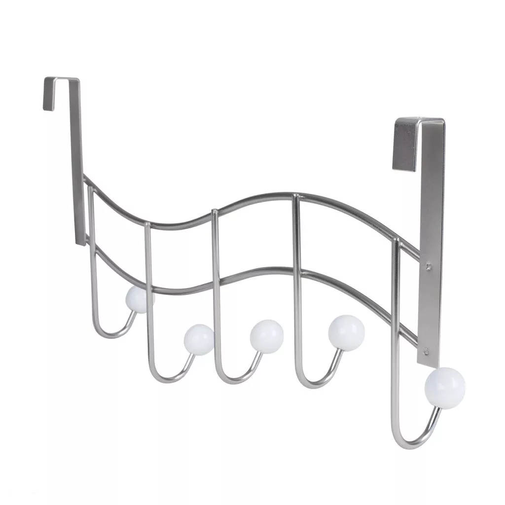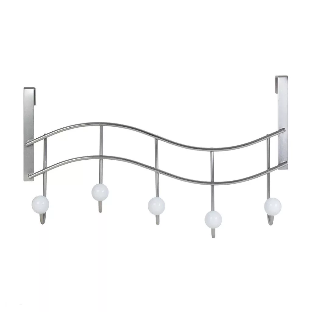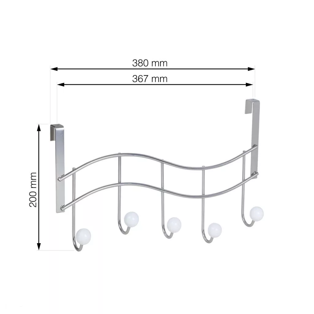 Ajtóakasztó 5 matt nikkel bevonatú kampóval, szélessége 380 mm, magassága 220 mm és mélysége 85 mm.