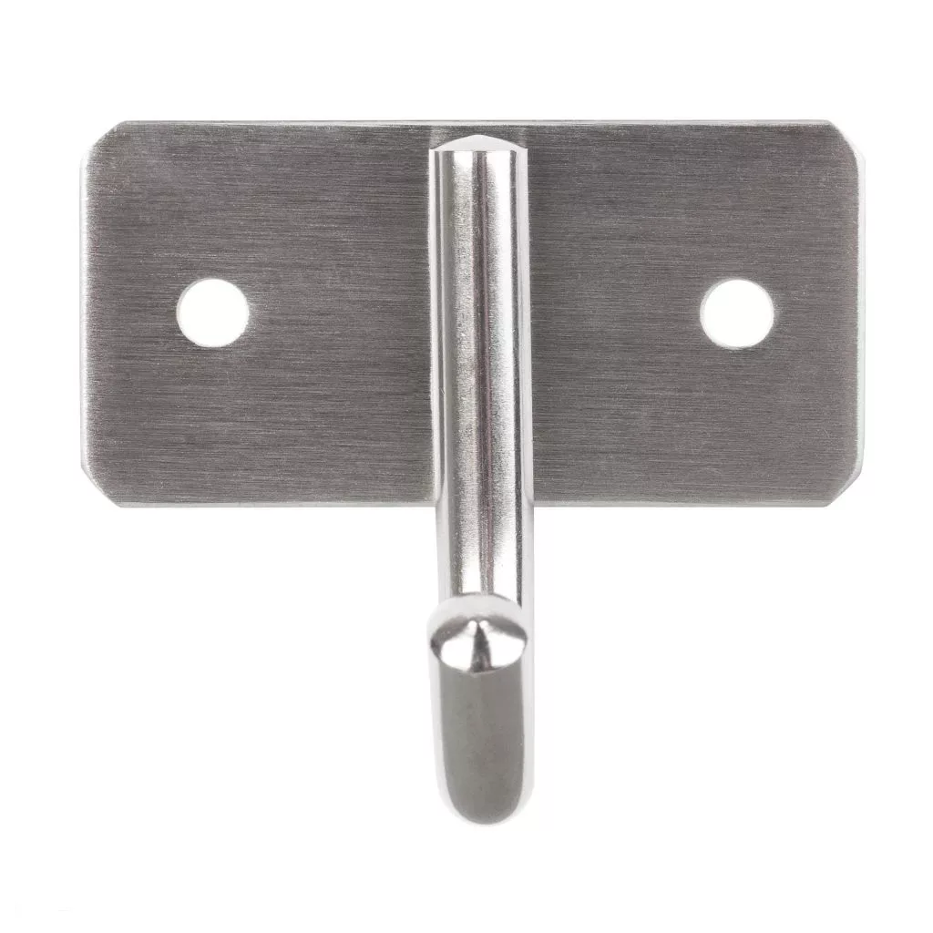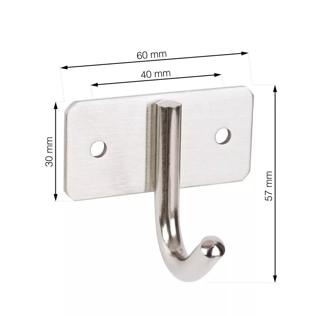 Klasszikus rozsdamentes acél akasztó, 60 mm széles, 53 mm magas és 44 mm mély. Falra vagy fa felületre történő szereléshez a távolság 39 mm. Rögzítőcsavarok mellékelve.