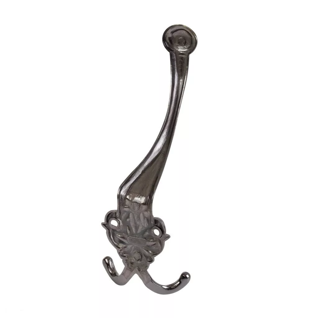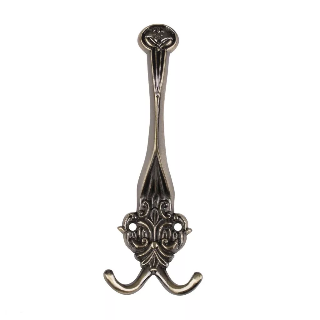 Rusztikus Halen I kabáttartó fogas antik sárgarézből, két akasztóval, szélessége 58 mm, magassága 155 mm és mélysége 64 mm. Falra vagy fa felületre való rögzítéshez 27 mm távolság. Rögzítőcsavarokkal együtt.