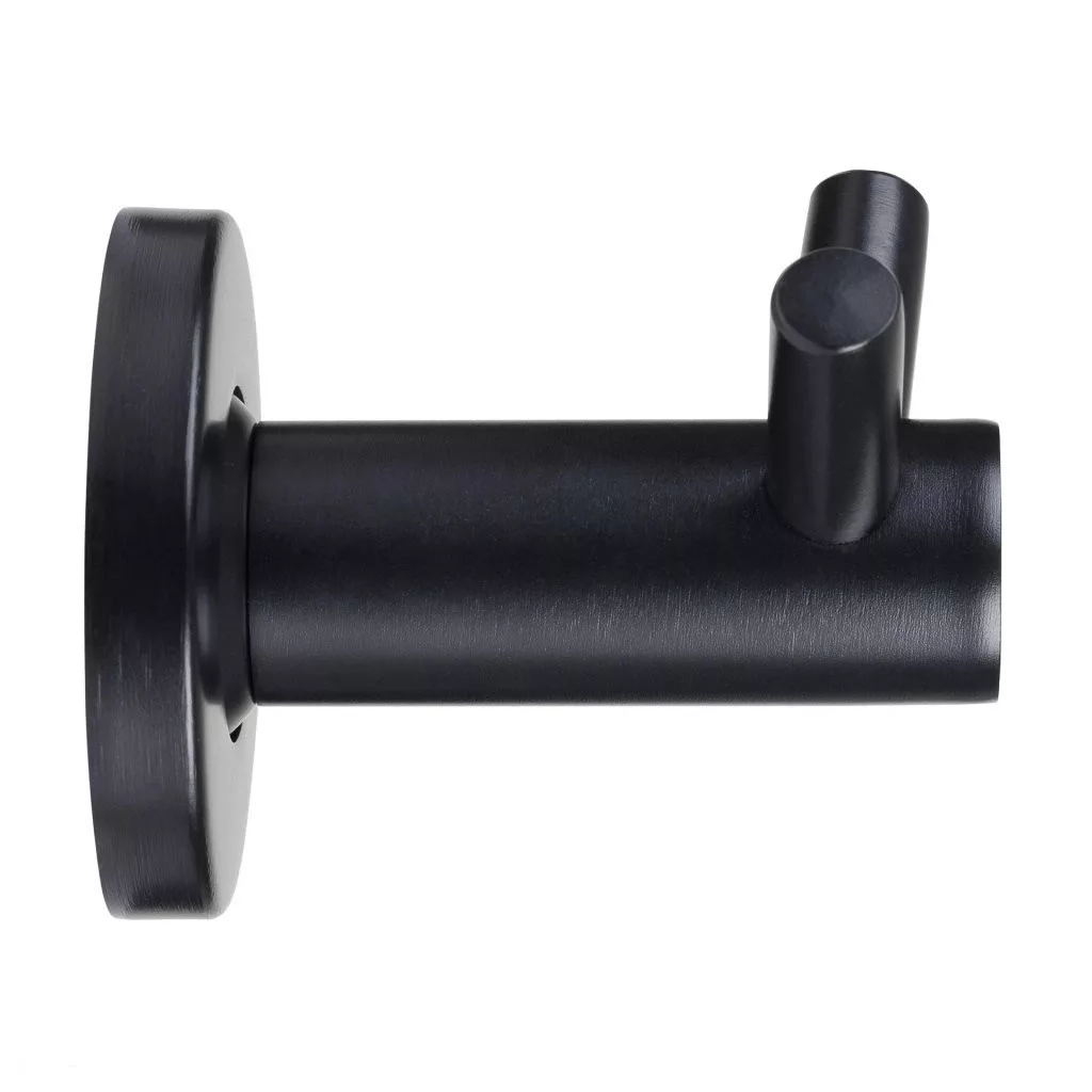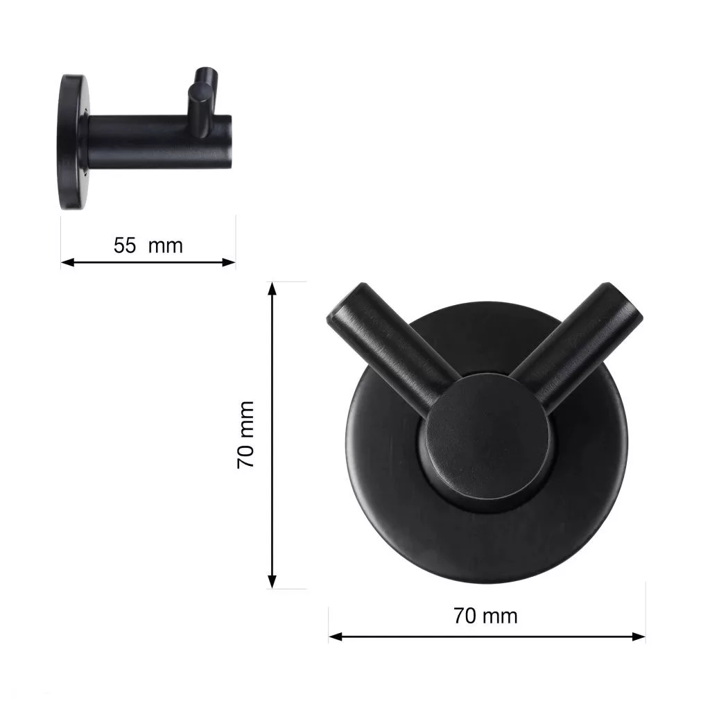 Klasszikus rozsdamentes acél kabáttartó modern fekete dizájnnal, 70 mm széles, 70 mm magas és 55 mm mély. Rögzítőanyaggal együtt.