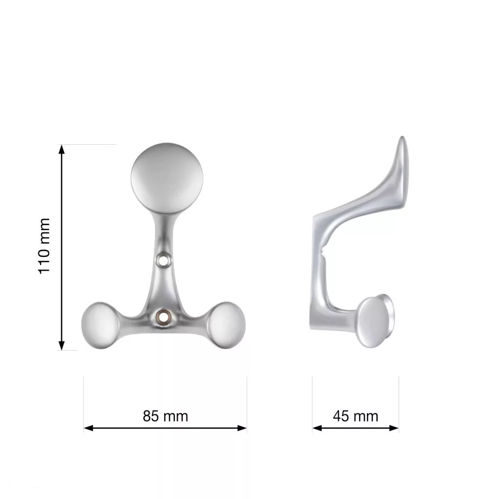 Klasszikus Ligos kabáttartó matt króm kivitelben, szélessége 86 mm, magassága 105 mm és mélysége 48 mm. Falra vagy fa felületre való szereléshez 30 mm távolság. Rögzítőcsavarok mellékelve.