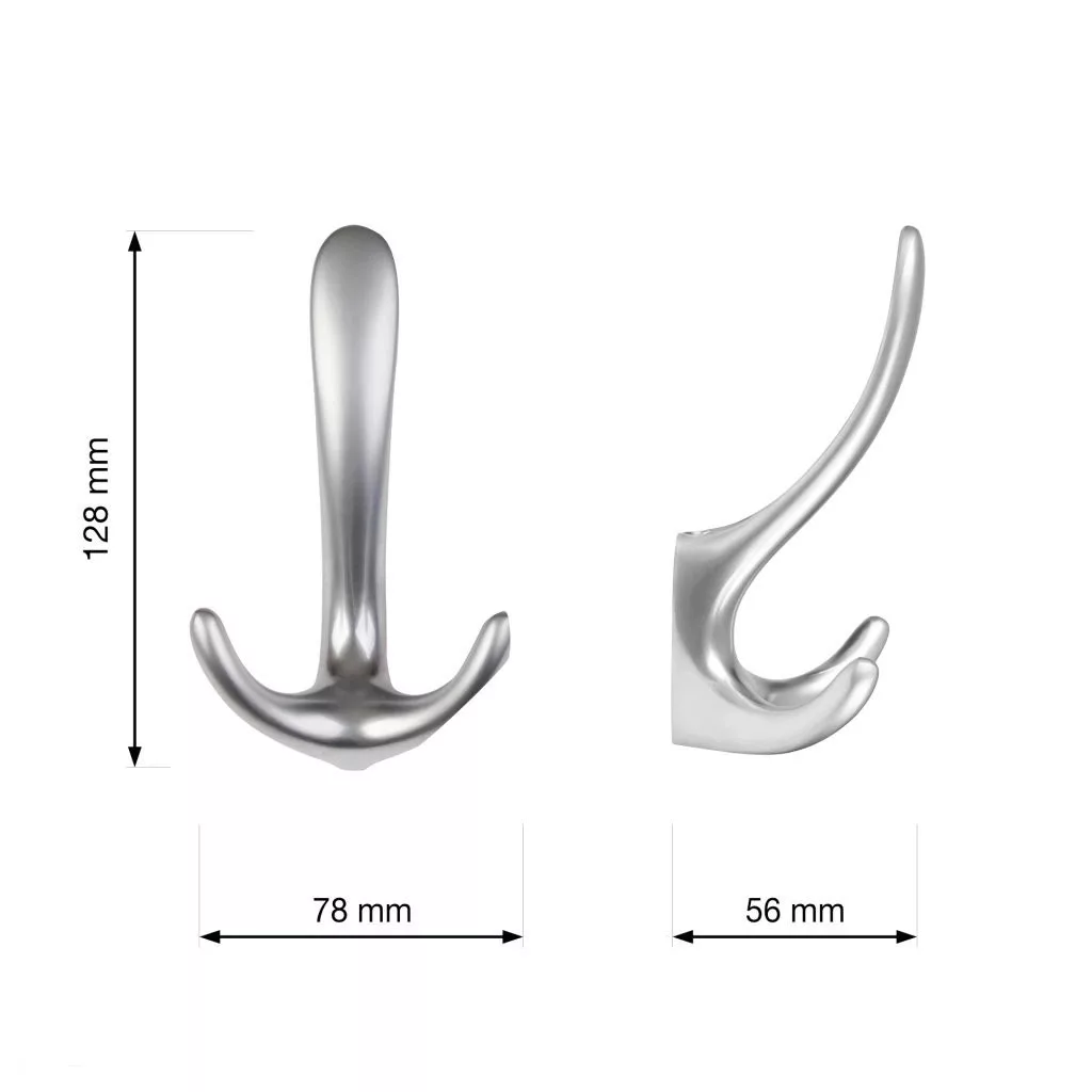 Klasszikus Trillo kabáttartó matt króm kivitelben, 78 mm széles, 128 mm magas és 56 mm mély. Falra vagy fa felületre való szereléshez 15 mm távolság szükséges. Rögzítőcsavarok mellékelve.
