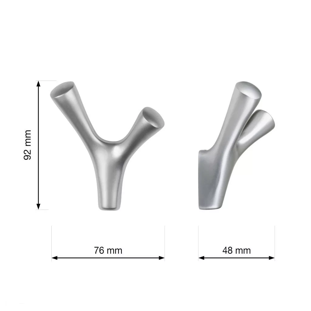 Klasszikus Amioso II kabáttartó matt króm kivitelben, szélessége 76 mm, magassága 92 mm és mélysége 48 mm. Falra vagy fa felületre való rögzítéshez 15 mm távolság. Akasztó átmérője 16 mm. Rögzítőcsavarok mellékelve.