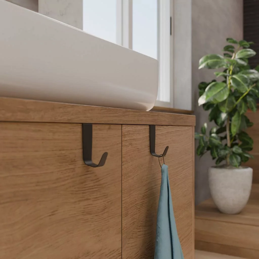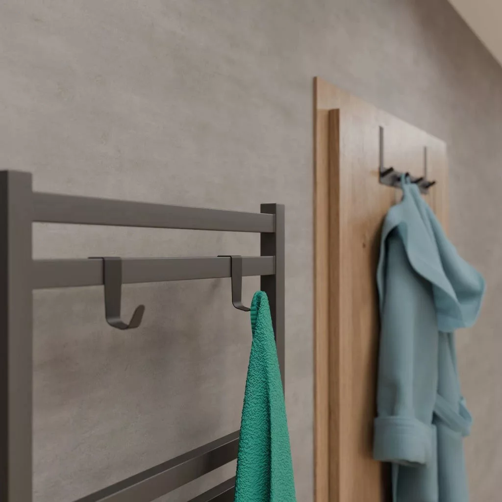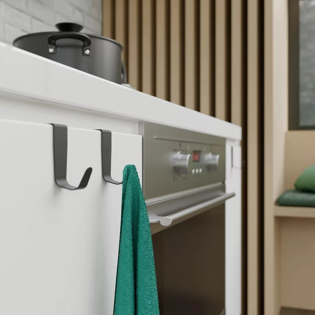 Matt fekete ajtóra akasztható akasztó, 25 mm széles, 70 mm magas és 64 mm mély. A csomag 2 db-ot tartalmaz.
