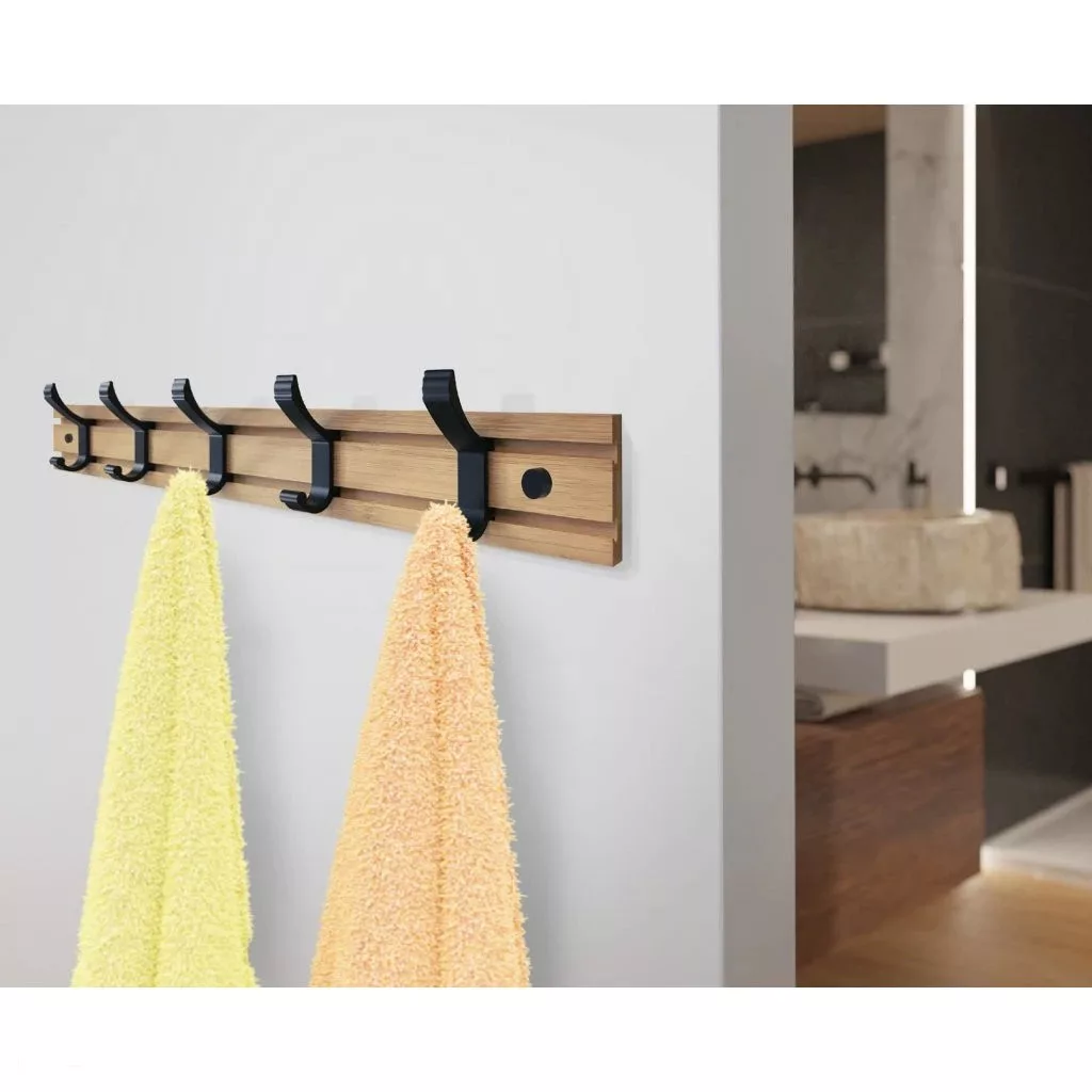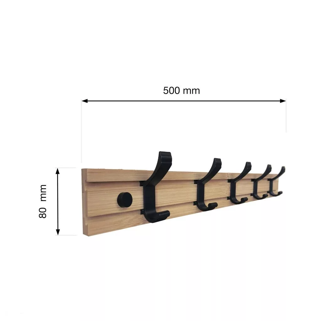 Ruhatartó 500x80 mm 5 akasztó bambusz+matt fekete