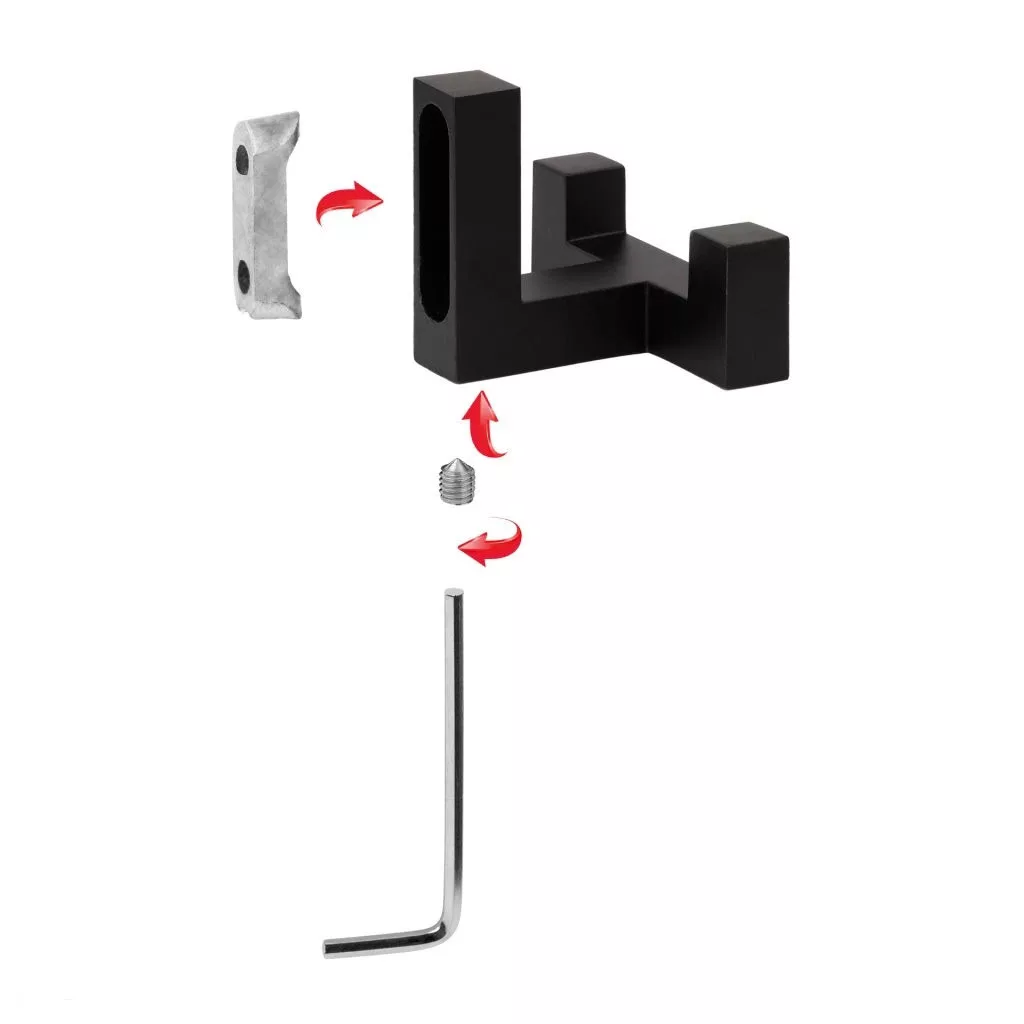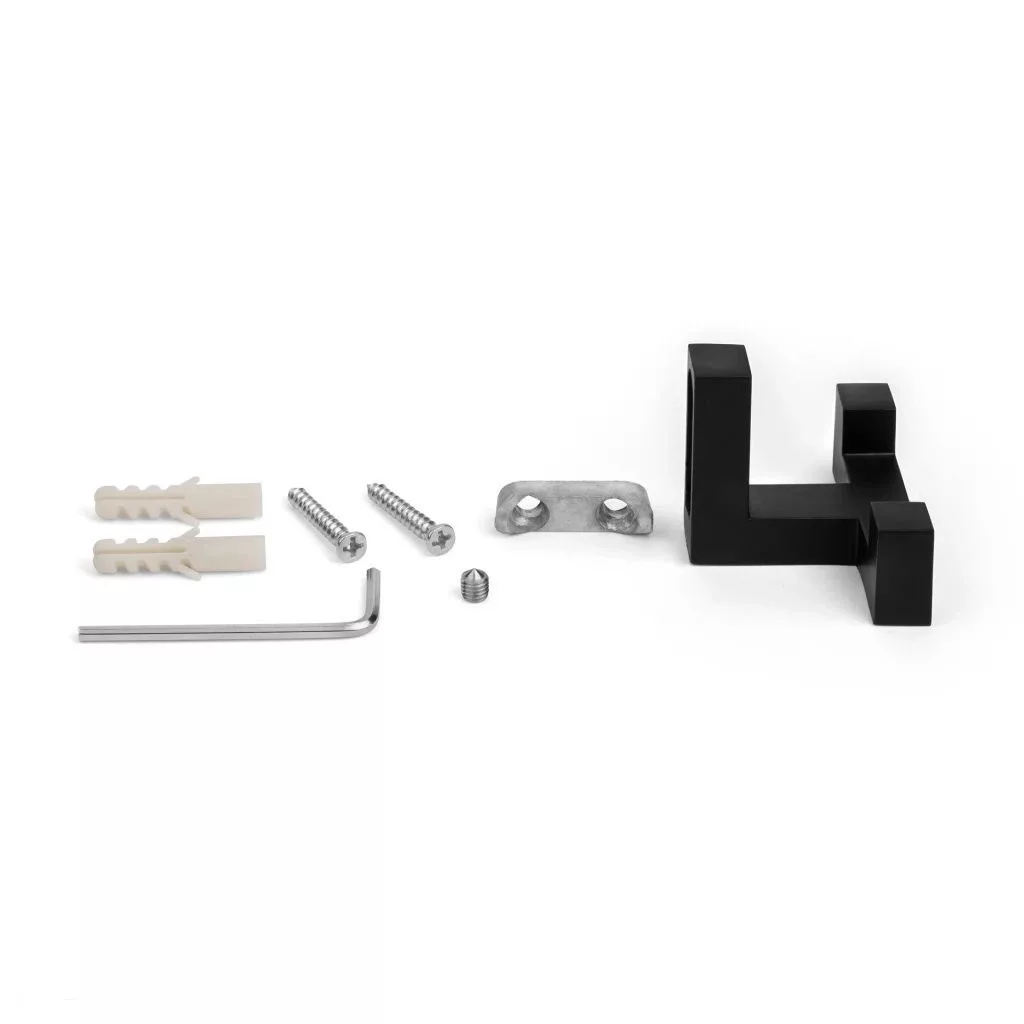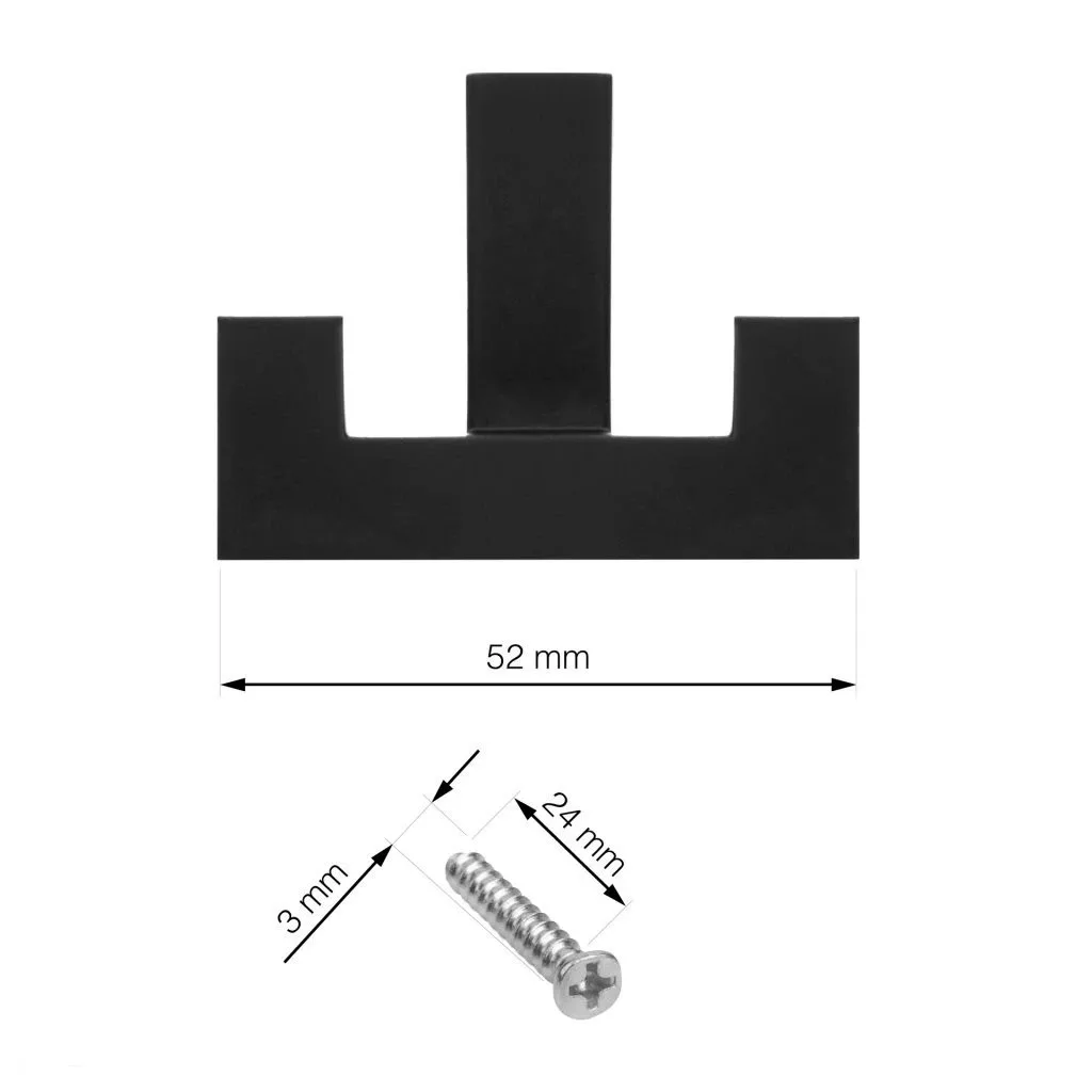Klasszikus Regen I kabátakasztó matt fekete színben, 52 mm széles, 40 mm magas és 40 mm mély. Rögzítőanyaggal együtt.