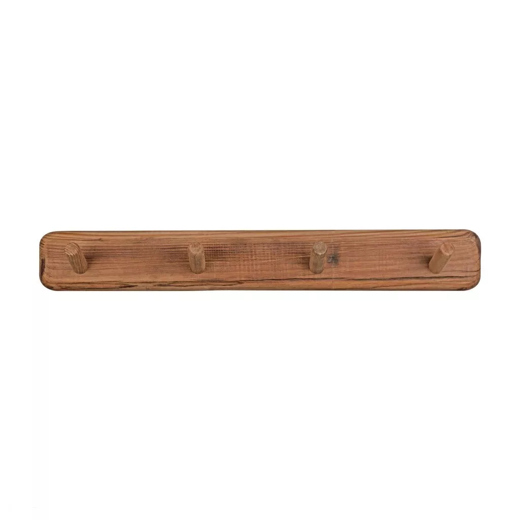Fából készült vintage kabáttartó négy akasztóval, 730 mm széles és 100 mm magas, újrahasznosított fenyőfából készült.