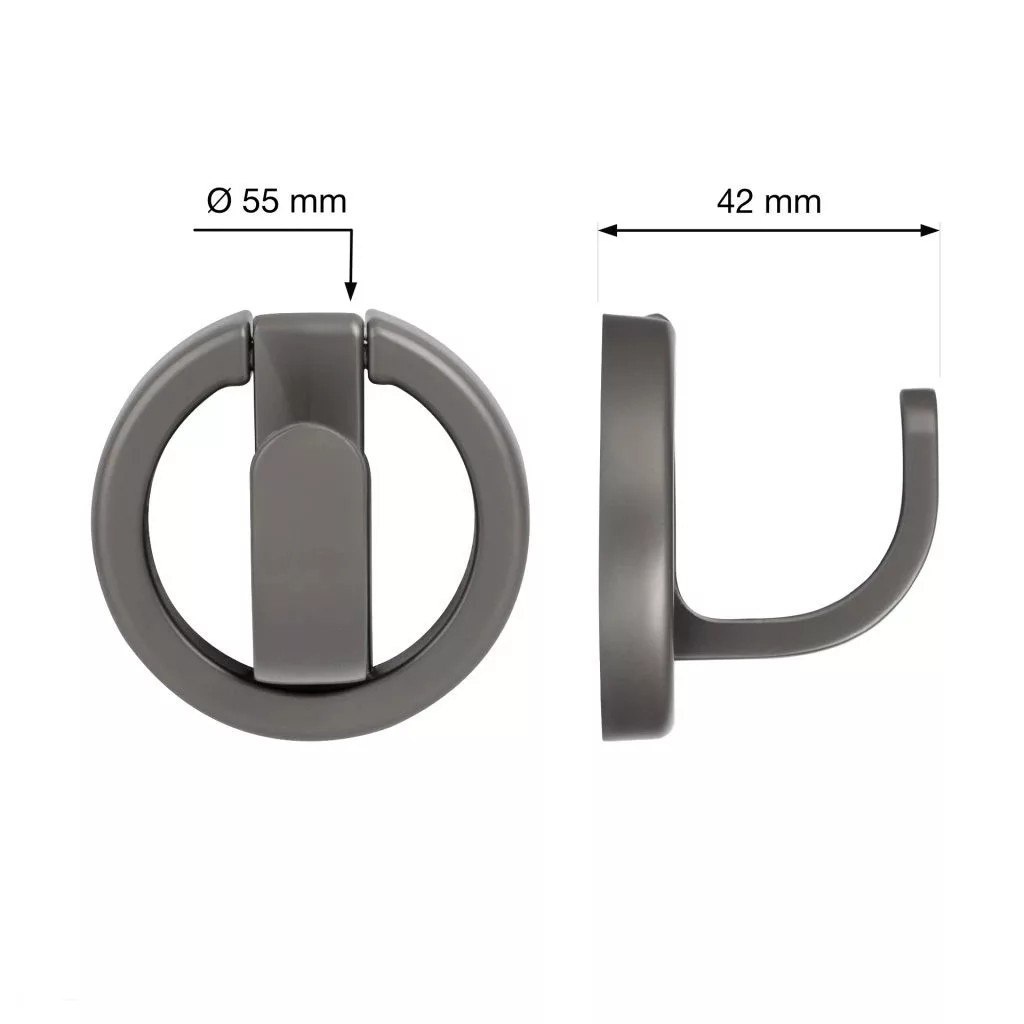 Klasszikus Tollo kabáttartó fogas modern antracit dizájnban, 55 mm átmérővel és 42 mm mélységgel. Rögzítőcsavarok mellékelve.