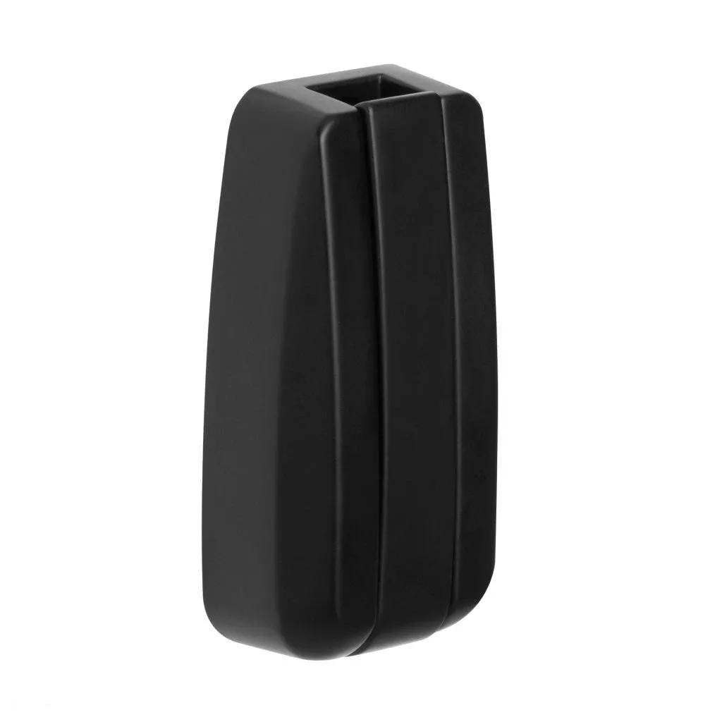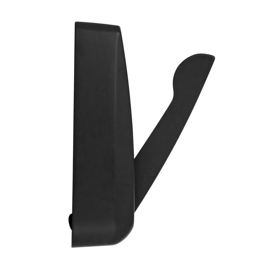 Matt fekete felhajtható akasztó, 26 mm széles, 50 mm magas és 13,5 mm mély. Rögzítőcsavarokkal együtt.