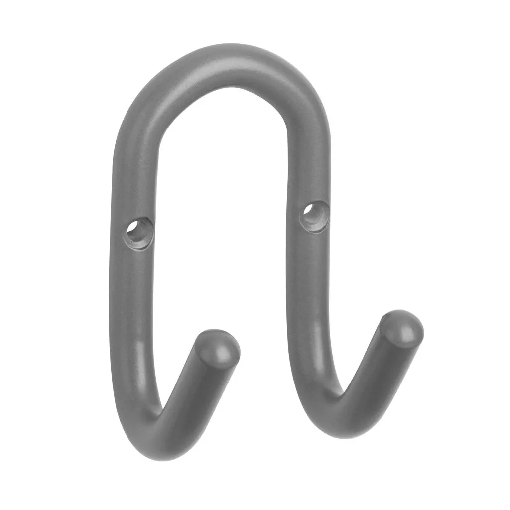 Klasszikus Rondel II szürke kabáttartó állvány két akasztóval, 50 mm széles, 90 mm magas és 58 mm mély. Rögzítőcsavarokkal együtt.