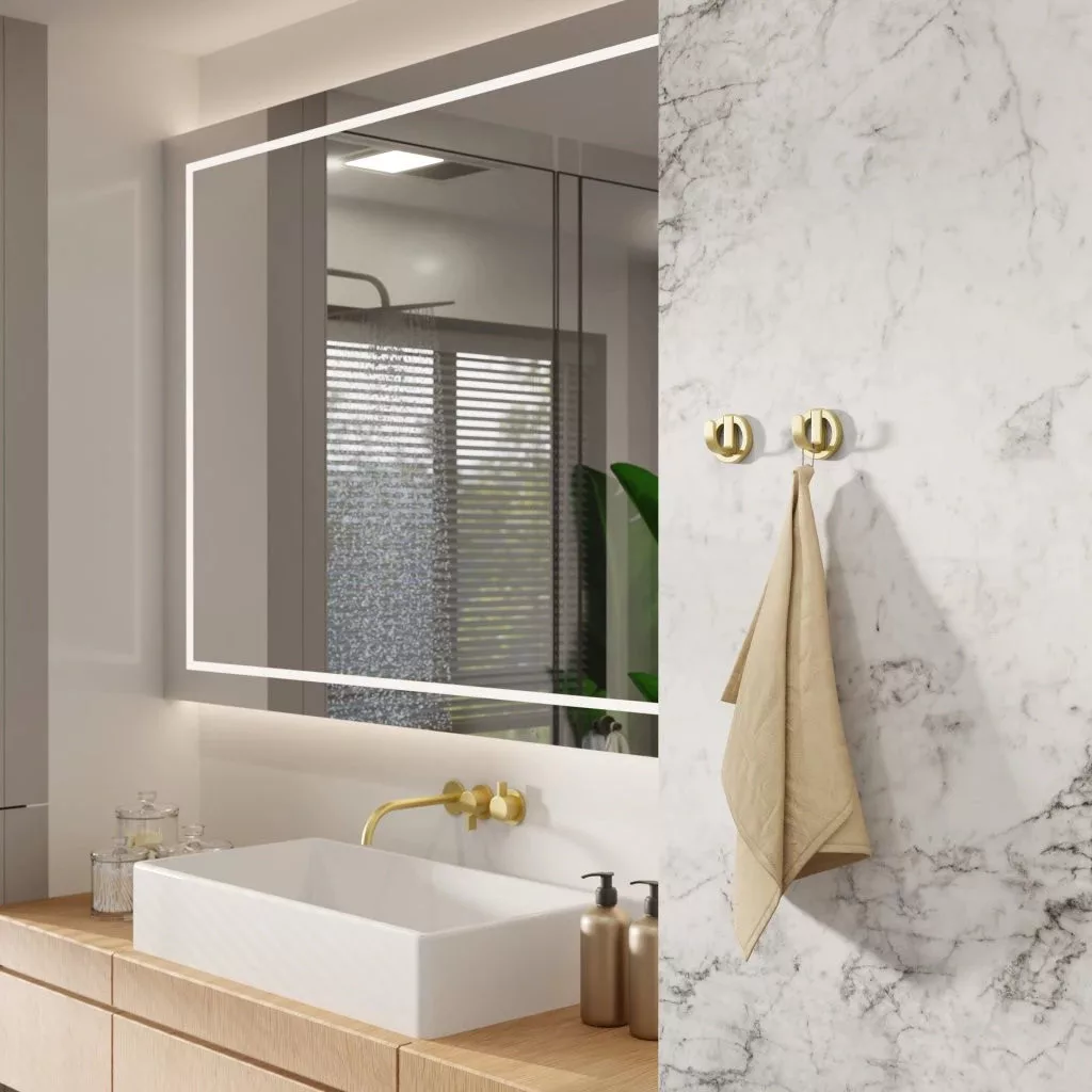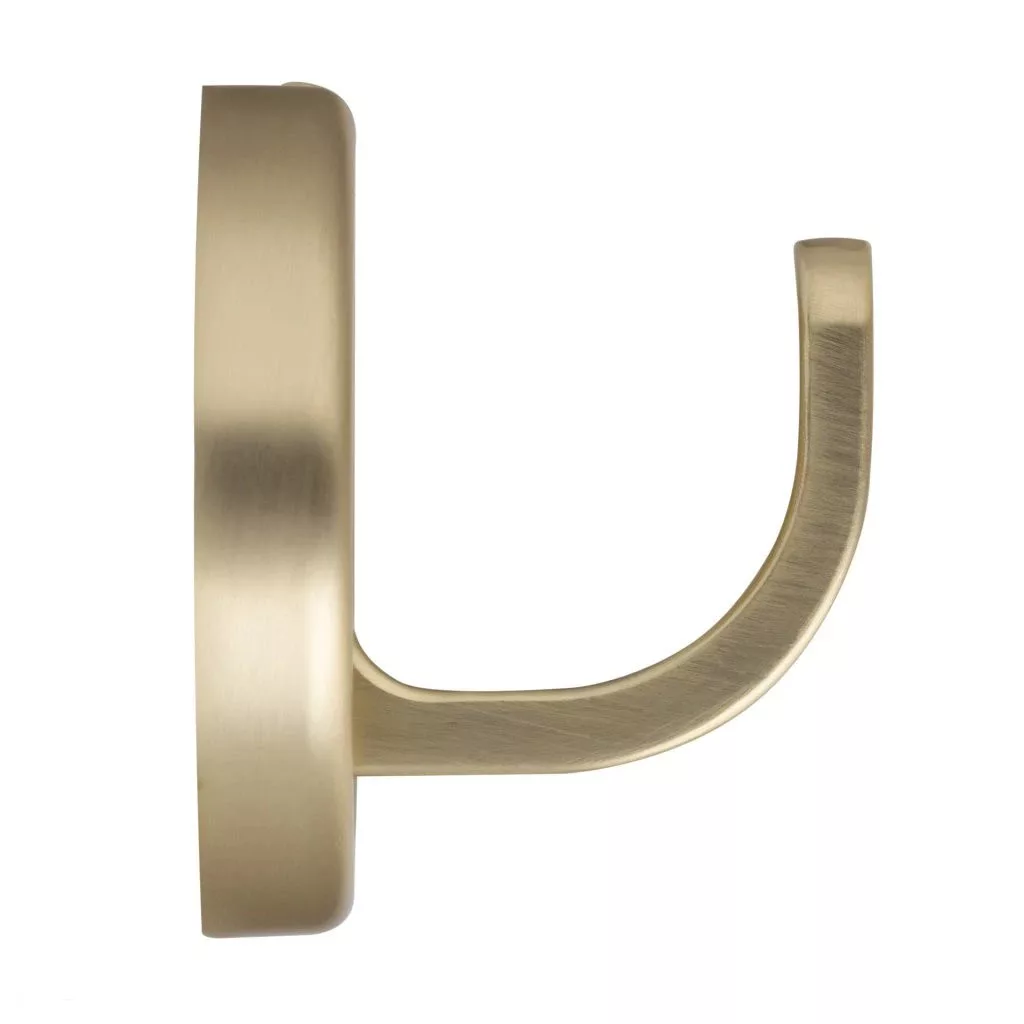 Klasszikus Tollo kabáttartó, szálcsiszolt sárgaréz kivitelben, 55 mm átmérővel és 42 mm mélységgel. Rögzítőcsavarokkal együtt.