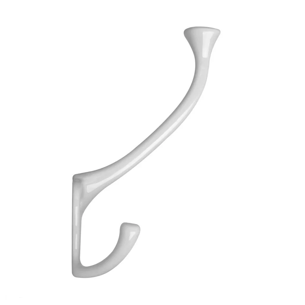 Klasszikus Katana kabáttartó fehér színben, két akasztóval, 65 mm széles, 115 mm magas és 65 mm mély. Rögzítőcsavarokkal együtt.