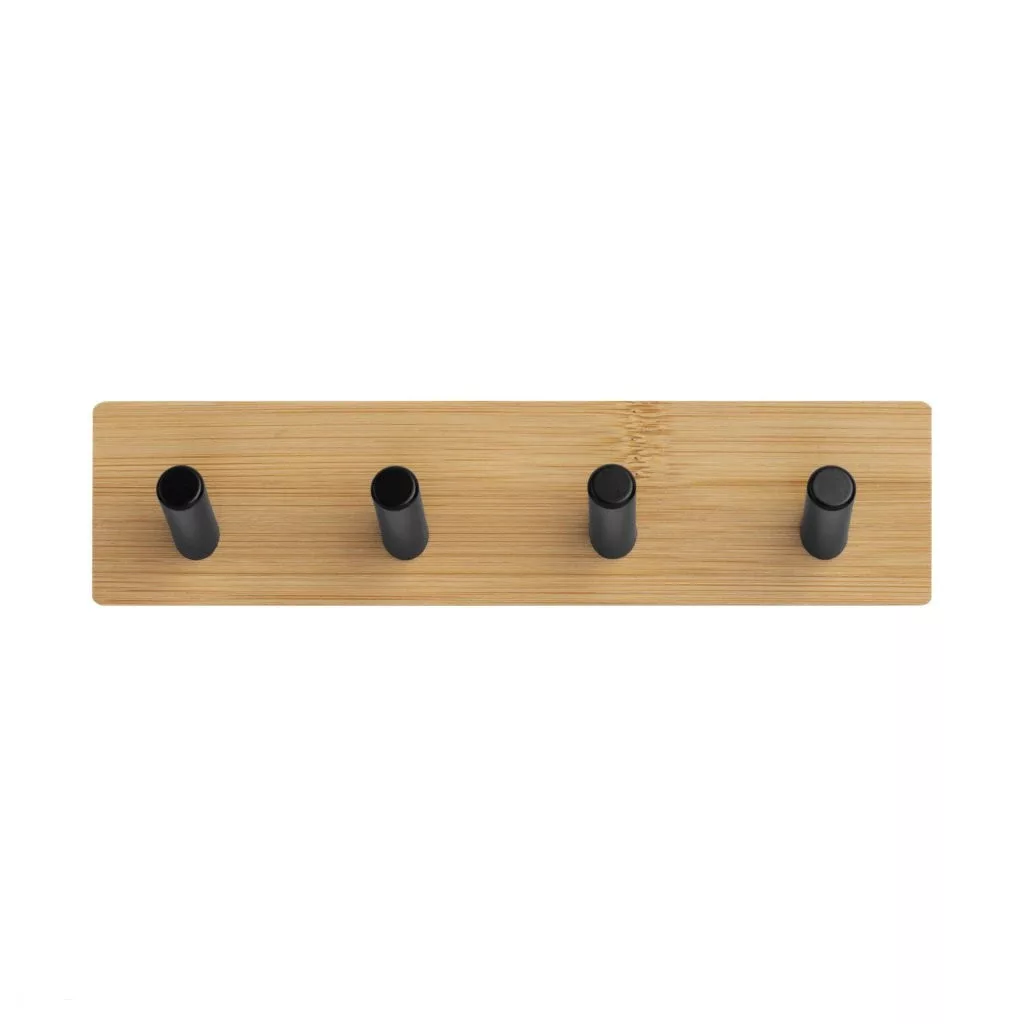 180 mm széles, 45 mm magas és 30 mm mély, öntapadós kabáttartó bambuszfából, négy fekete akasztóval.